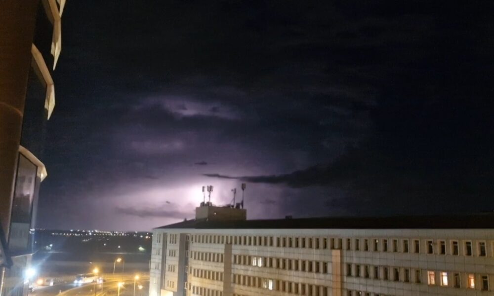 Meteoroloji 15’inci Bölge Müdürlüğü’nün sağanak ve gök gürültülü yağış uyarısının ardından kent merkezinde akşam saatlerinde yağmur etkili oldu. Yağışla birlikte sık aralıklarla çakan şimşekler, gökyüzünü aydınlattı. O anlar, cep telefonu kamerasına yansıdı.