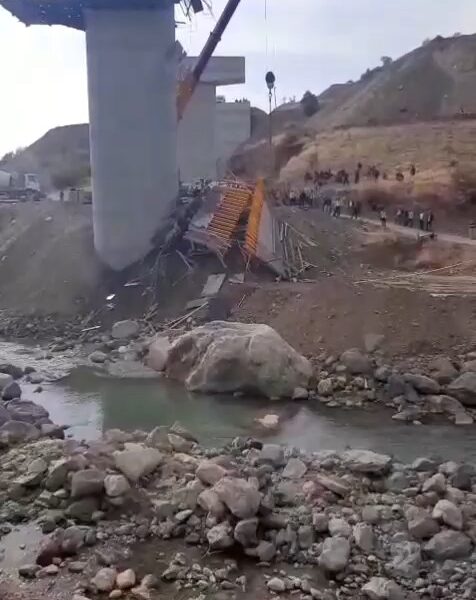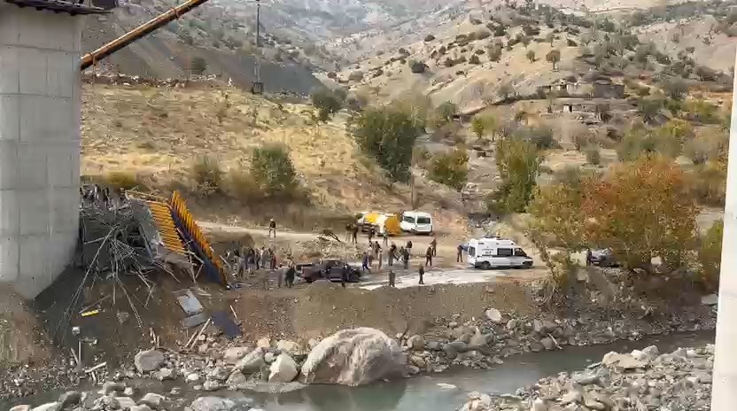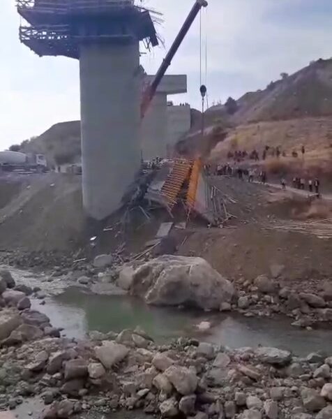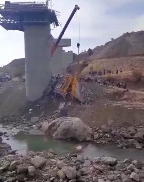 • Diyarbakır'ın Kulp ilçesinde Muş kara yolunda yapımı süren viyadükte kurulu iskele çöktü. Fotoğraf: Diyarbakır, (DHA)