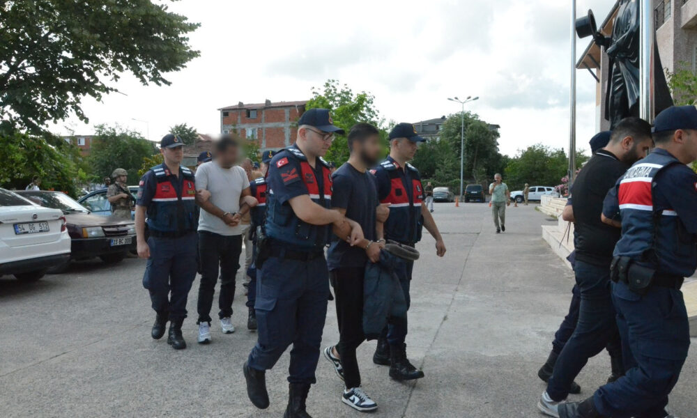 Karasu İlçe Jandarma Komutanlığı’ndaki işlemleri tamamlanan şüpheliler, adliyeye sevk edildi.