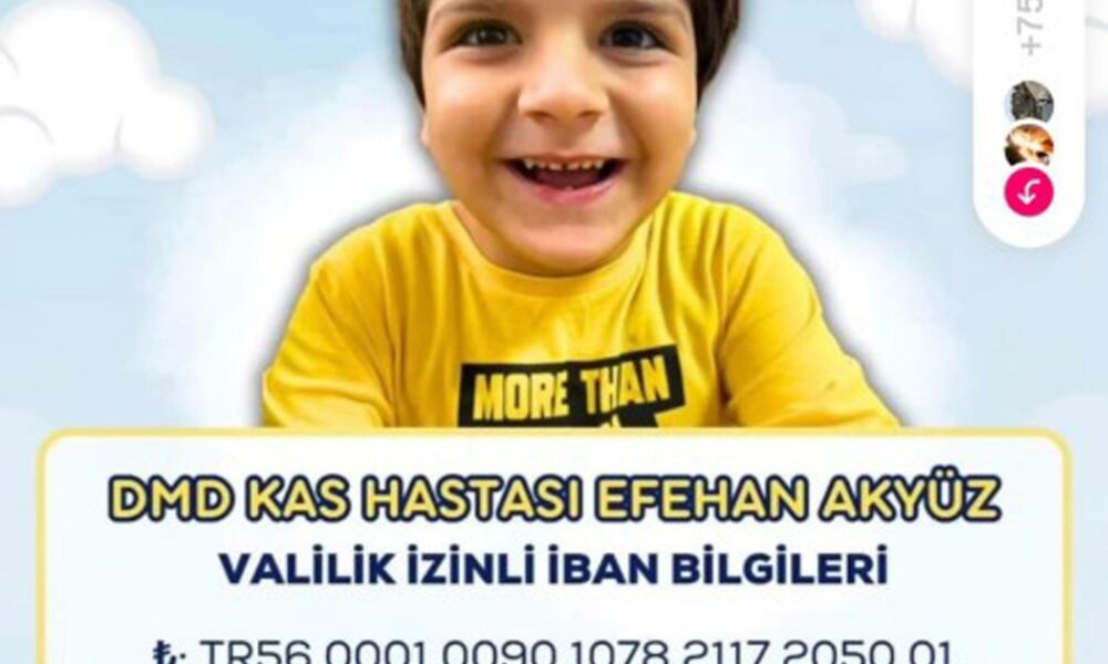 Selçuk ilçesinde yaşayan Ahmet (45)-Bahriye Akyüz (43) çiftinin çocukları 6,5 yaşındaki Efehan Akyüz, 1 yıl önce konuşma güçlüğü nedeniyle götürüldüğü rehabilitasyon merkezinin ardından merdiven çıkmakta zorlanınca Sağlık Bilimleri Üniversitesi (SBÜ) İzmir Tıp Fakültesi Dr. Behçet Uz Çocuk Hastalıkları ve Cerrahisi Eğitim ve Araştırma Hastanesine yönlendirildi. Akyüze, yapılan tetkikler sonucunda her geçen gün kaslarının erimesine neden olan DMD tanısı konuldu. Dubaide uygulanacak gen tedavisi için gerekli olan 3 milyon doların karşılanması amacıyla 2024 yılı Ekim ayında başlatılan valilik onaylı yardım kampanyasının ikincisi sürerken, kampanyada henüz yüzde 18e ulaşıldı.