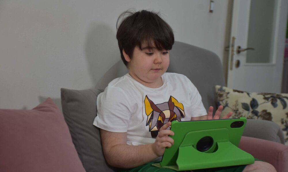 İzmir'in Balçova ilçesinde yaşayan DMD hastası Aras Denizer yaşıtları gibi koşup oynamak ve okula gitmek istiyor. Cem Denizer (Fotoğrafta) Fotoğraf: Nevra UÇKAÇ/İzmir,(DHA)