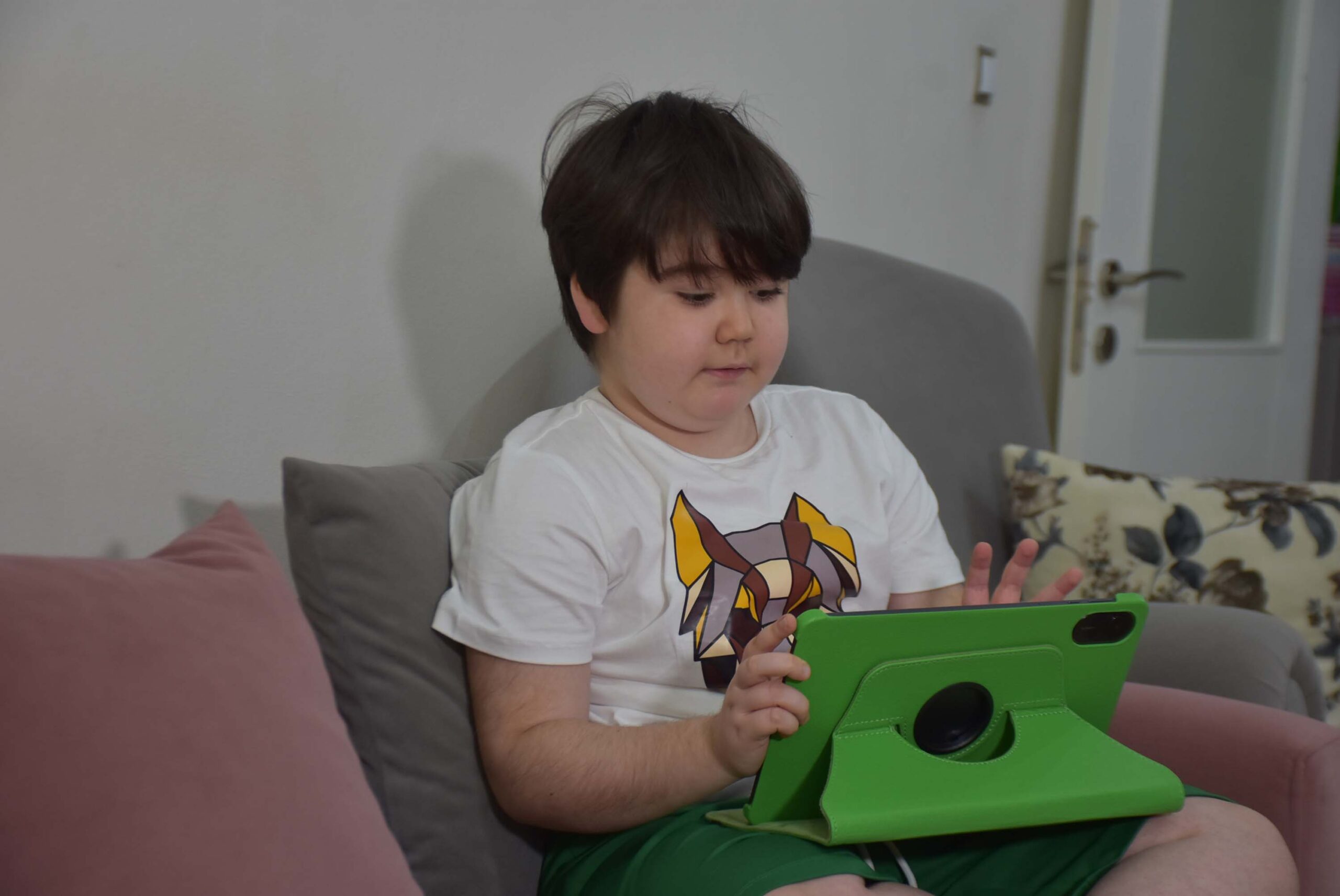 İzmir'in Balçova ilçesinde yaşayan DMD hastası Aras Denizer (Fotoğrafta) yaşıtları gibi koşup oynamak ve okula gitmek istiyor. Fotoğraf: Nevra UÇKAÇ/İzmir,(DHA)
