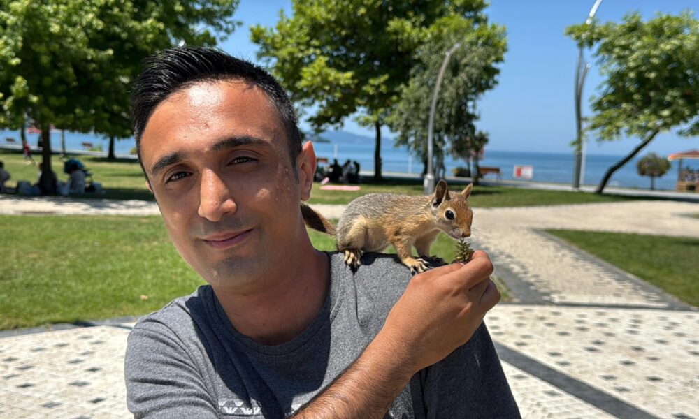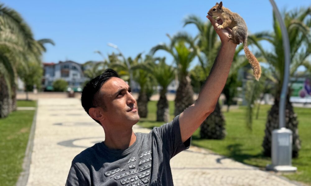 Doğada yaralı bulduğu sincap, en yakın arkadaşı oldu