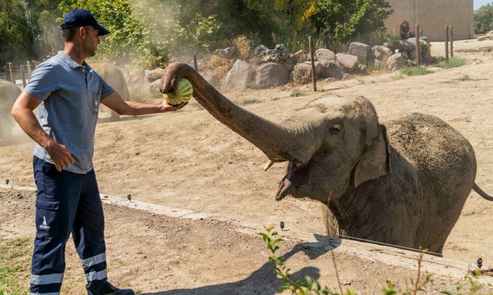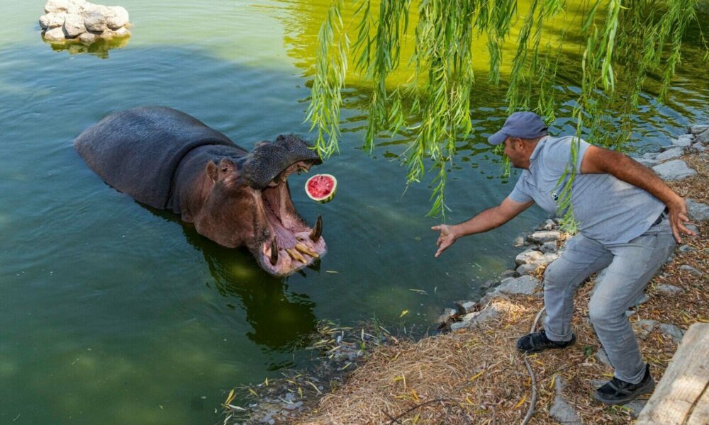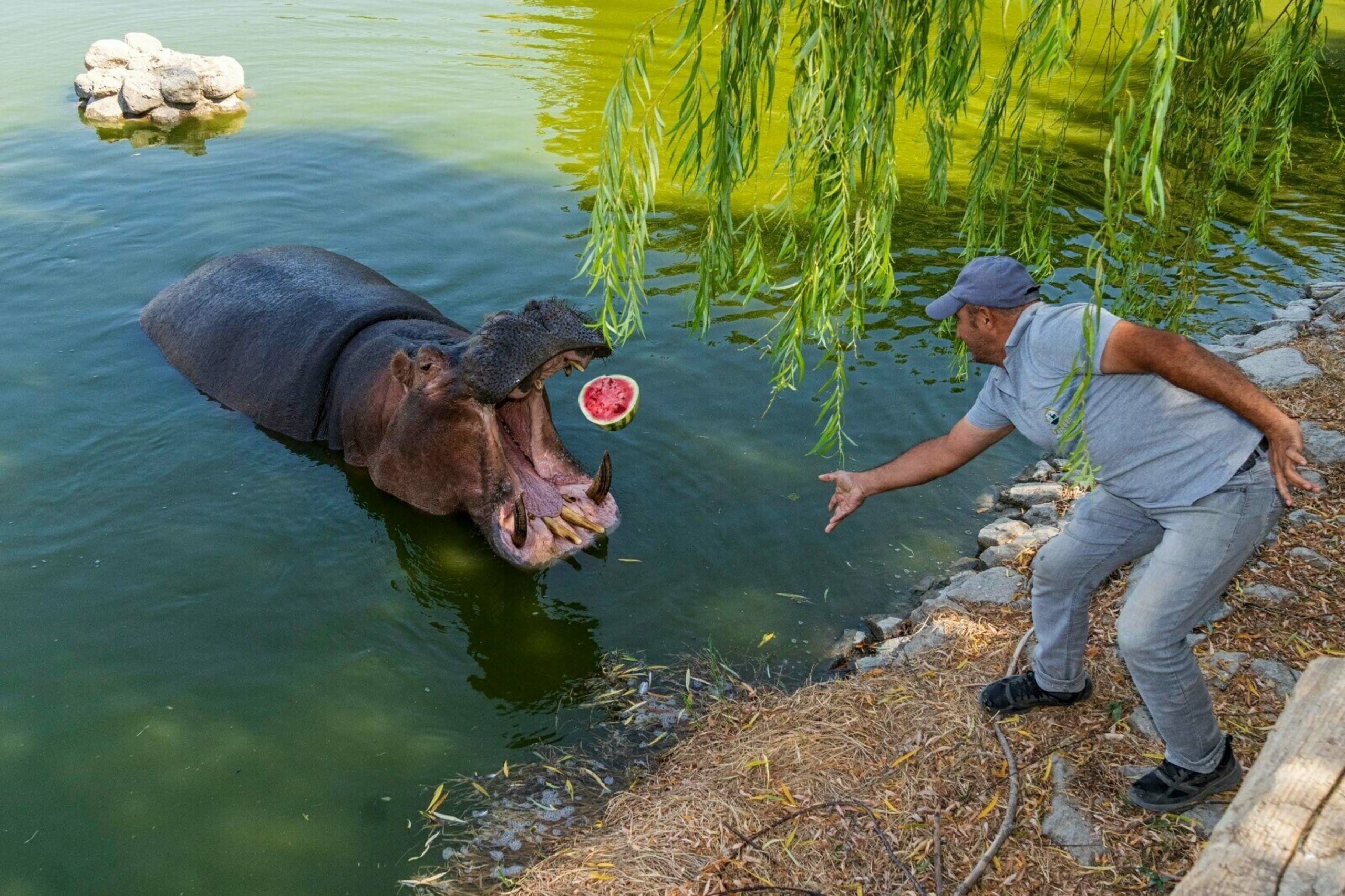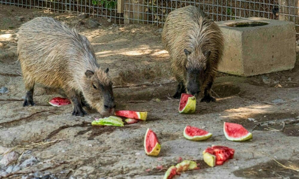 Doğal Yaşam Parkı’ndaki hayvanlar, çiftçinin bağışladığı karpuzları yedi