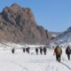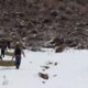 • Erzurum'un Oltu ilçesinde doğaseverler, yaban hayata destek için karlı arazide yürüdü. Grup, yanlarında taşıdıkları 10 balya otla 30 kilo buğdayı araziye bıraktı. Fotoğraf: Dursun Murat AYDIN / Oltu (Erzurum),(DHA)