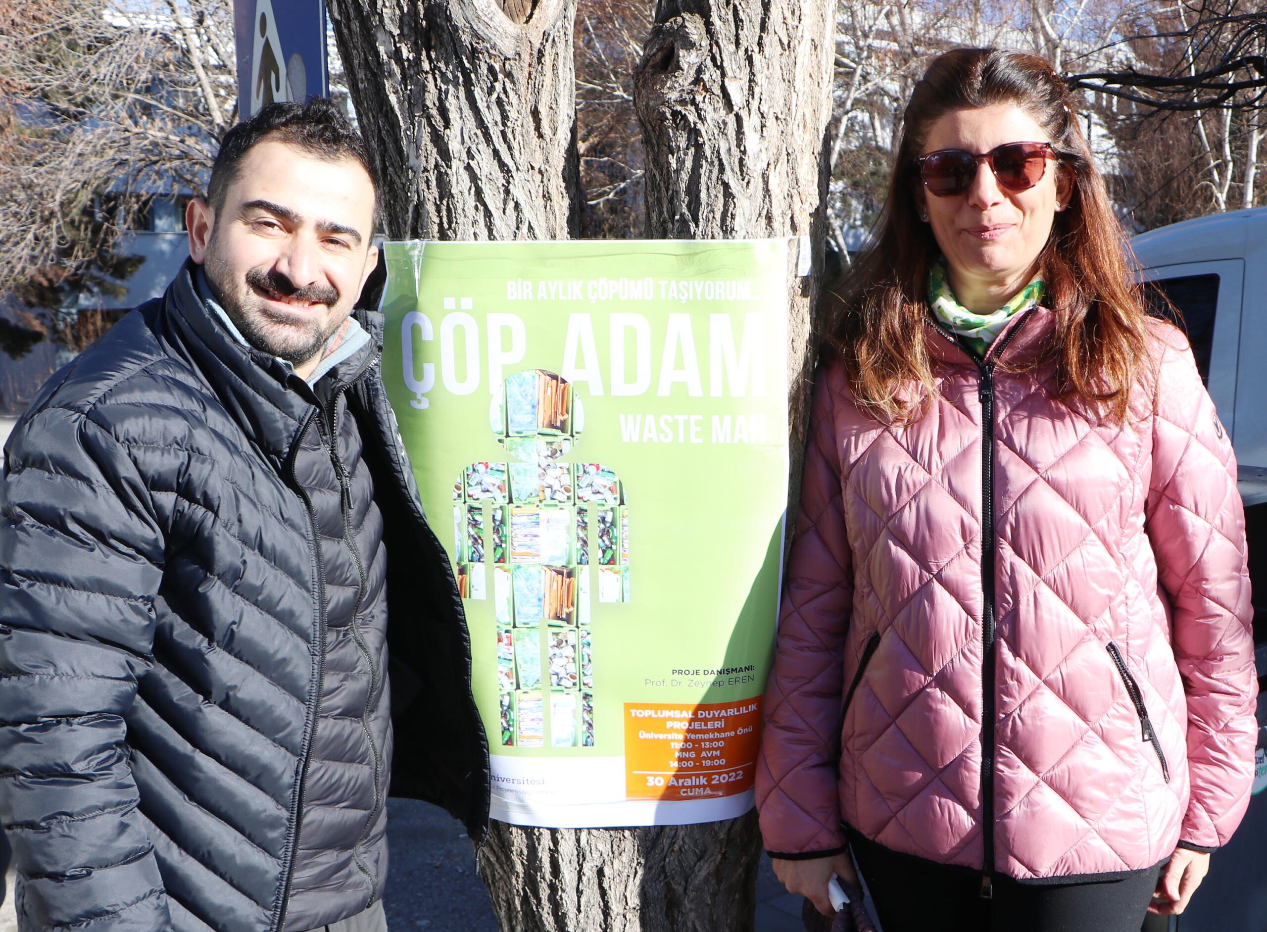 Erzurum Atatürk Üniversitesi Mühendislik Fakültesi Çevre Mühendisliği Bölümü yüksek lisans öğrencisi ve aynı zamanda iş insanı olan, evli ve 1 çocuk babası Melikşah Tekin, danışmanı olan Atatürk Üniversitesi Mühendislik Fakültesi Çevre Mühendisliği Bölümü Öğretim Üyesi Prof. Dr. Zeynep Eren’in desteğiyle geri dönüşümün önemine dikkat çekmek amacıyla, 1 ay boyunca evi, iş yeri ve gittiği yerlerde, atıkları toplayıp biriktirdi. Tekin, yaklaşık 12 kilo ağırlığındaki atıklarla da çöp elbise tasarladı. Prof. Dr. Eren ve okuldan arkadaşlarıyla cadde ve sokaklarda gezen Tekin, çevre dostu bisiklet de kullandı. Bölge halkının dikkatini çeken Tekin, isteyenlerle selfie ve hatıra fotoğrafı da çektirdi.