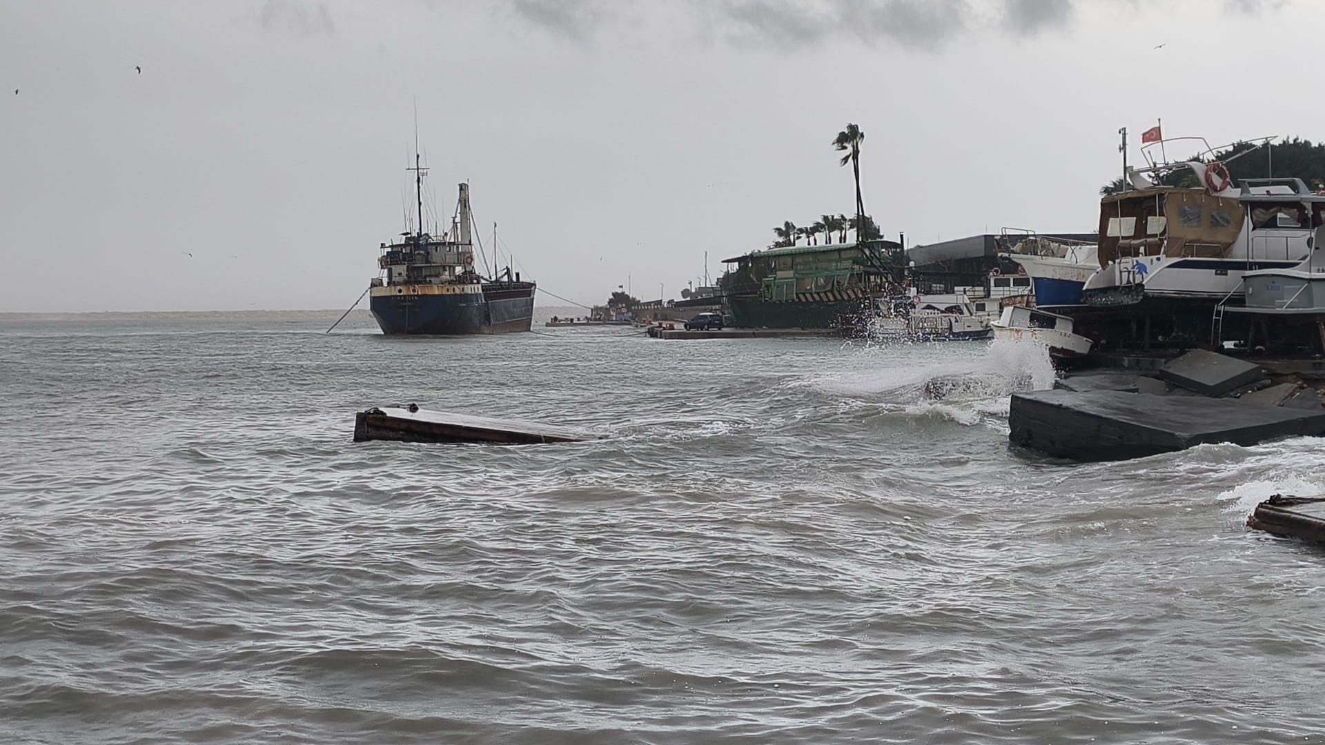 Mersinde sağanak ve fırtına nedeniyle deniz taşma noktasına gelirken, merkez Akdeniz ilçesinde balıkçı barınağında bağlı olan teknelerin batma tehlikesi ortaya çıktı. Hatayda bazı yapıların çatıları uçtu. Belediye ekipleri çalışma başlattı.