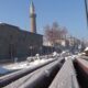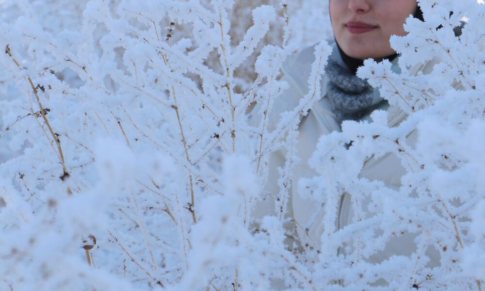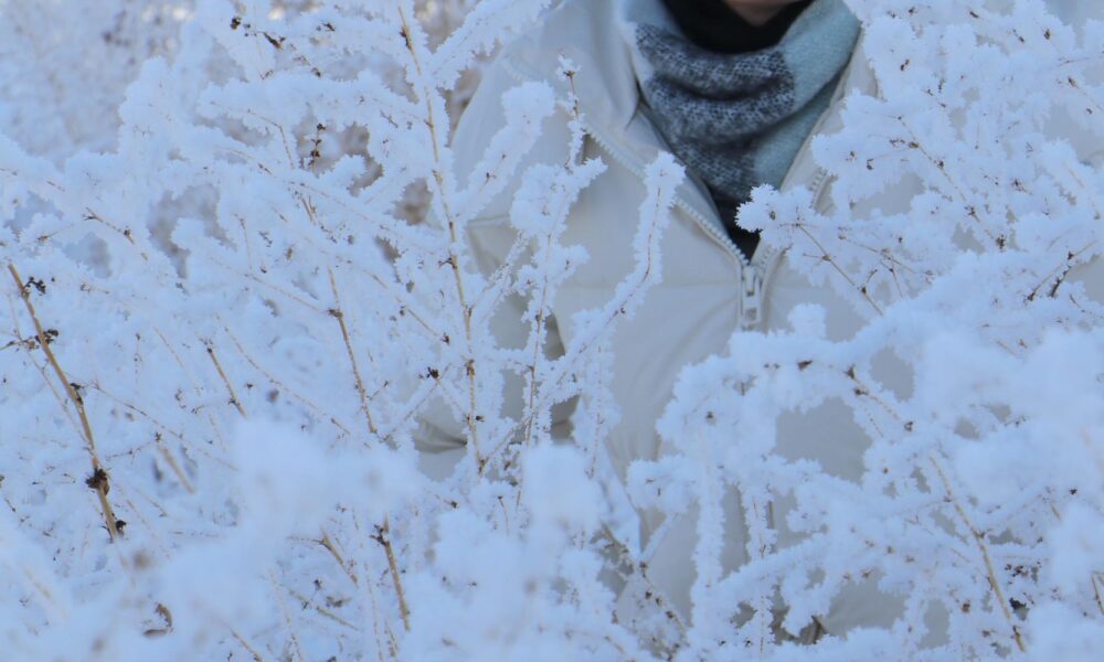 • Hava sıcaklığının sıfırın altında 21.5 derece olarak ölçüldüğü Yakutiye'de ağaçlar kırağı bağladı, şadırvanlar dondu, otobüs duraklarının camları buz tuttu. Fotoğraf: Turgay İPEK / Erzurum,(DHA)