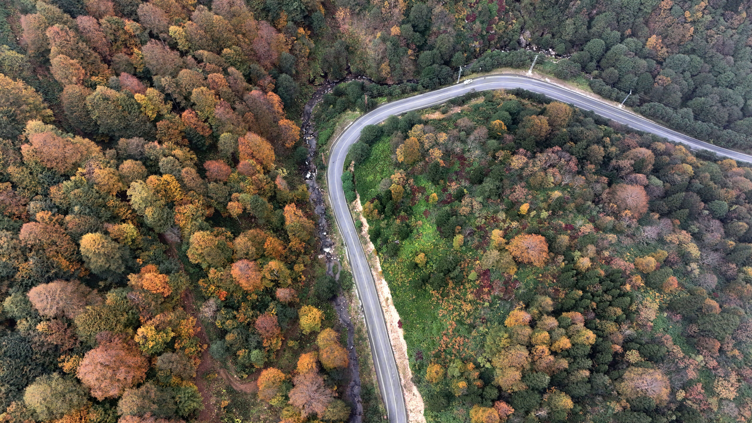 Doğası ve coğrafi güzellikleriyle turistlerin son yıllarda sıkça ziyaret ettiği Doğu Karadenizde, sonbaharla birlikte yeşil örtü yerini, sarı ve kahverengi tonlara bıraktı. Trabzonun yüksek rakımlı ilçelerinde sararan yapraklarıyla ağaçlar, renk cümbüşü oluşturdu. Orta çıkan manzaralar doğa fotoğrafçılarının da ilgi odağı oldu. Bölgedeki manzara dron kamerasına yansıdı.