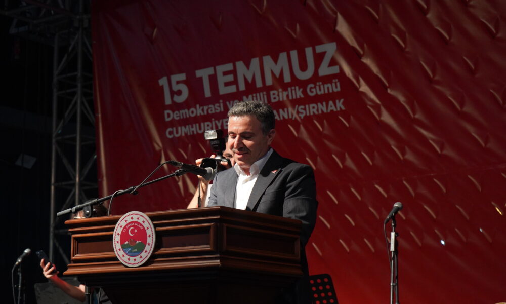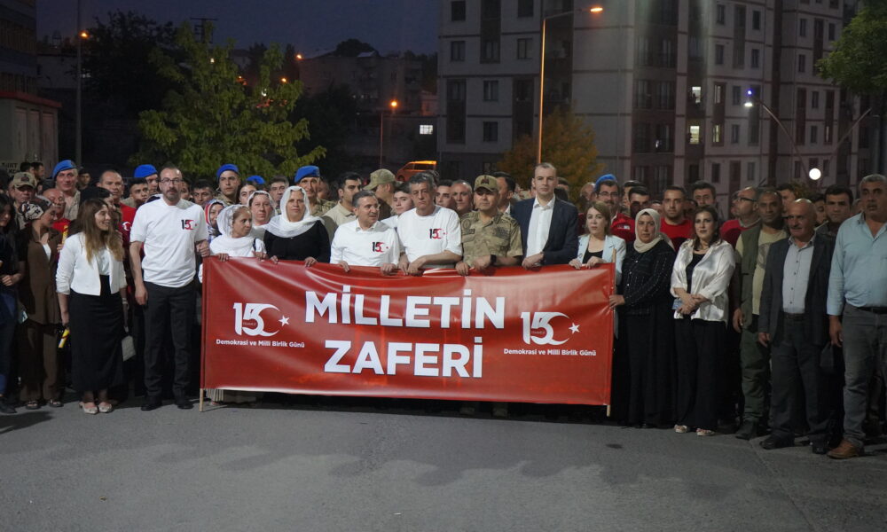Şırnakta yapılan etkinliklerde valilik öncülüğünde fener alayı düzenlendi. Ömer Kabak Meydanı’ndan başlayan fener alayına Şırnak Valisi Cevdet Atay, Belediye Başkanı Mehmet Yarka, Cumhuriyet Başsavcısı Hayrullah Şahin, 23’ünücü Piyade Tümen Komutanı Tümgeneral Emre Tayanç, İl Jandarma Komutanı Tümgeneral Murat Bulut, siyasi parti temsilcileri, sivil toplum kuruluşlarının temsilcileri, askeri erkan ve vatandaşlar katıldı. Şırnaklılar, 105 metre uzunluğundaki Türk bayrağını Cumhuriyet Meydanı’na kadar taşıdı. Yapılan konuşmalardan sonra sancak yarışında dereceye giren sporcular Vali Cevdet Atay’a Türk bayrağını teslim etti. Cumhuriyet Meydanında başlayan Demokrasi nöbetinde konuşan Vali Cevdet Atay, Şırnak’ta darbecilerin vatandaşların direnişi karşısında geri çekildiklerini ifade ederek, “Hain Darbe girişiminin seyrini değiştiren birçok önemli olay vardır. O kritik olaylardan biri de Şırnak’ta yaşandı. O gece devletin her kademesine gizli emelleri için sızan Fetullahçı terör örgütünün sözde komutanları hain planları için askeri birlikleri harekete geçirerek Şerafettin Elçi Havaalanına doğru harekete geçtiler. Birliğin amacı havaalanına geçip oradan Ankara ve İstanbul’a ulaşmaktı. Ancak bilmedikleri şey, kıymetli Şırnaklı hemşerilerimizin cesaretiydi. Burada cesur Şırnaklılarla beraber devletinin ve milletinin yanında yer alan TSK mensupları, jandarma, emniyet ve korucularımız onların kirli oyunlarını bozdular. Darbeciler direniş ile karşılaşarak geri çekildiler. Şırnak halkının bu direnişi milletimizin birlik ve beraberliklerinin en güzel örneklerinden biriydi” dedi.