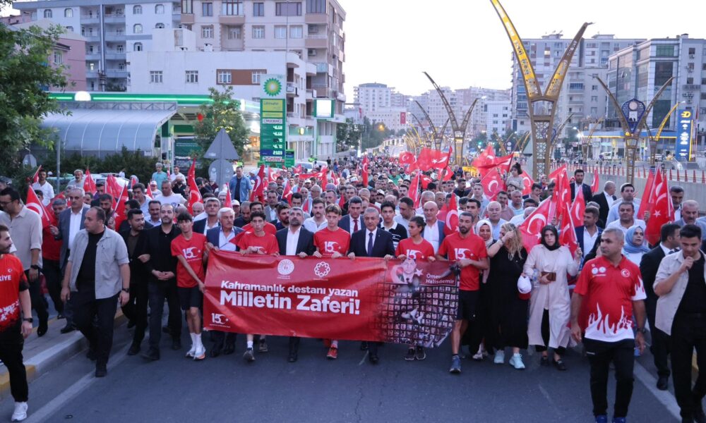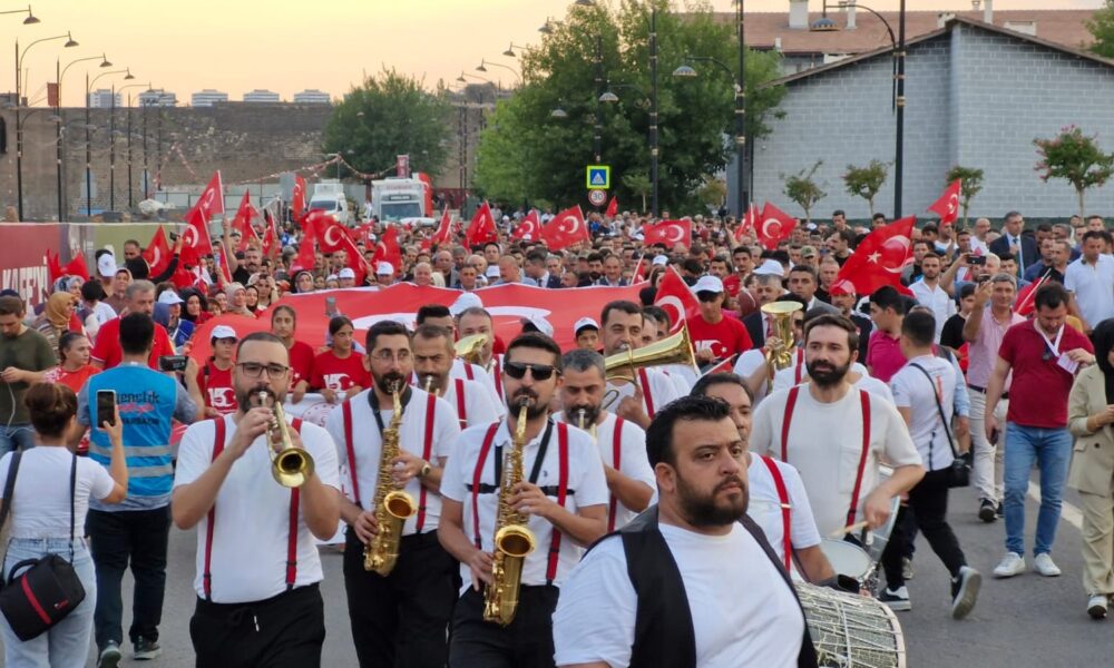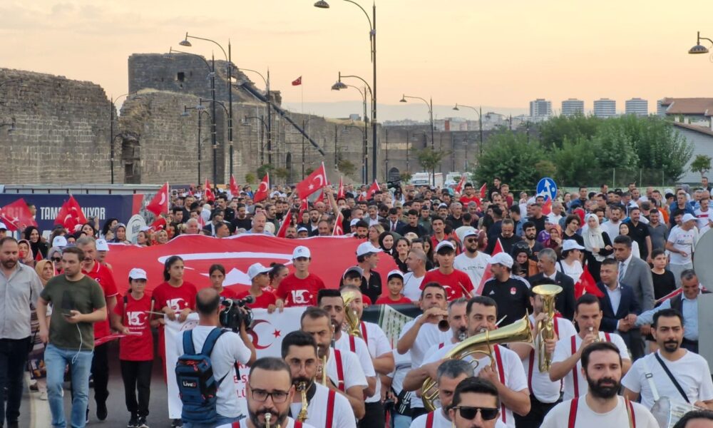 15 Temmuz Demokrasi ve Milli Birlik Günü etkinlikleri kapsamında Diyarbakır’da çeşitli etkinlikler gerçekleştirildi. Etkinliklerde Sur ilçesinde bulunan Keçiburcu’ndan Kurşunlu Camiye kadar yürüyüş yapıldı. Yürüyüşe, Vali Murat Zorluoğlu, İl Jandarma Komutanı Tuğgeneral Selçuk Yıldırım, İl Emniyet Müdürü Fatih Kaya, 7. Kolordu ve Garnizon Komutanı Tümgeneral Fedai Ünsal ile 8. Ana Jet Üs Komutanı Tuğgeneral Gürtaç Kayapınar, merkez ilçe kaymakamları, kamu kurum müdürleri vatandaşlar ile şehit ve gazi yakınları katıldı. Yürüyüşün ardından Diyarbakır Valisi Murat Zorluoğlu, 15 Temmuz’un, şanlı direnişin destanlaştırdığı mutlu mücadelenin adı olduğunu belirterek, “Bugün hain darbe girişiminin 8’nci seneidevriyesinde, bir taraftan 251 vatandaşımızı bir gecede şehit vermenin hüznünü yaşıyoruz, diğer taraftan da dünyada eşine rastlanmayan bir direnişe milletçe imza atmış olmanın haklı gururunu yaşıyoruz. 15 Temmuz 2016da tanklara, uçaklara meydan okuyarak, mermilere adeta göğüslerini siper ederek, ‘Kendi cumhurbaşkanımı, kendi hükümetimi, kendi meclisini ben belirledim, darbeci alçaklara irademi teslim etmem’ diyen aziz milletimi buradan saygıyla selamlıyor, teşekkür ediyorum. Biz imanımıza, tarihimize, kültürümüze ve elbette en önemlisi neslimize sahip çıktıkça, Allahın izniyle bu ülkeyi hiç kimse işgal edemez. Bu milleti hiç kimse de köle yapamaz. 15 Temmuz, bu gerçeğin hem hain FETÖ terör örgütüne hem de onların arkasındakilere, onların ağababalarına bir kere daha net ve açık şekilde hatırlatılmasıdır. 15 Temmuz sadece benim, sadece senin ya da sadece belli bir kesimin hikayesi değildir. Değerli hemşerilerim, 15 Temmuz bilakis her dünya görüşünden, her mezhepten, her meşrepten, her inançtan ve her etnik kökenden kahraman milletimizin ortak başarısıdır. 15 Temmuz, 85 milyonun hep birlikte verdiği şanlı direnişin ve destanlaştırdığı mutlu mücadelenin adıdır” dedi.