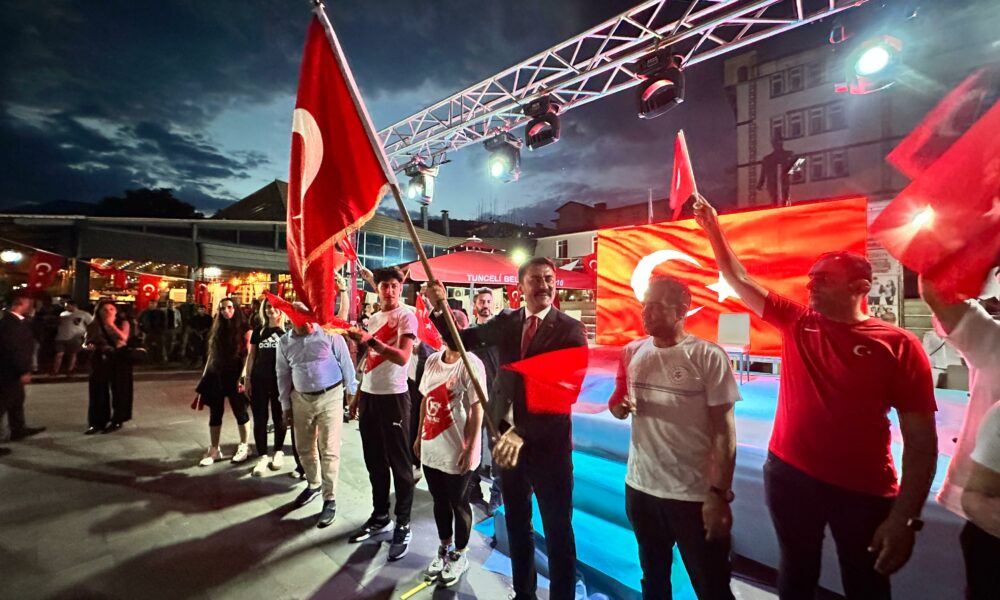 Tunceli Valiliği tarafından ‘15 Temmuz Demokrasi ve Milli Birlik Günü’ etkinlikleri kapsamında şehir merkezindeki Yer Altı Çarşısı üzerinde anma programı gerçekleşti. Programa Vali Bülent Tekbıyıkoğlu, İl Jandarma Komutanı Nuh Köroğlu, Cumhuriyet Başsavcı vekili Ali Çelikoğlu, Munzur Üniversitesi Rektörü Prof. Dr. Kenan Peker, İl Emniyet müdürü Hakan Duman, siyasi parti temsilcileri, kurum amirleri, gaziler, şehit yakınları ve vatandaşlar katıldı. Şehitler için saygı duruşunda bulunup, İstiklal Marşının okunmasıyla başlayan tören, Kuran-ı Kerim tilavetiyle devam etti. Programda konuşan Vali Bülent Tekbıyıkoğlu şahitlere rahmet diledi. Konuşmaların ardından 15 Temmuz Demokrasi ve Milli Birlik Günü’nün önemini anlatan gösterim sırasında, sağanak yağış etkili oldu. Sağanak yağışa rağmen protokol üyeleri, yağmura aldırış etmeden programı devam ettirdi. Program, okullar arasında düzenlenen 15 Temmuz Destanı temalı şiir ve kompozisyon yarışmasında dereceye giren öğrencilerin, şiir ve kompozisyonlarını okunmasıyla son buldu.