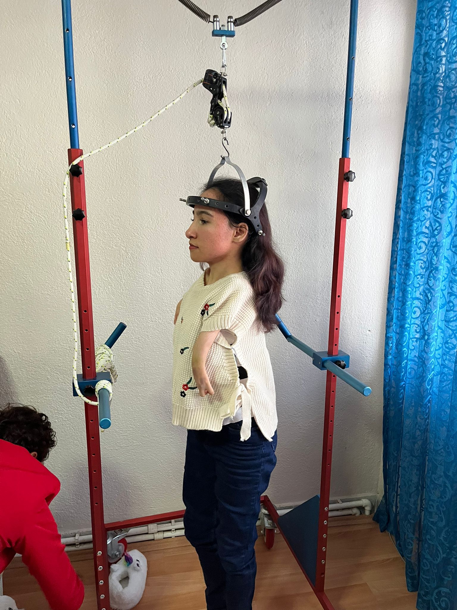 Polatlı Cemil Meriç Engelsiz Hayat Merkezi sorumlusu Sevim Çiçek Yıldız da “Kader skolyozdan dolayı 3 aydır gördüğünüz aparatları takıyor. Omurilik biraz açıldı. 4 Şubatta felç riskini azaltmak için ameliyat geçirecek. Akciğer ve kalbe baskıyı azaltmak için yapılıyor bu ameliyat. Tam düzelemeyecek ama organların zarar görmeyeceği noktada sabitleyecekler onu. Bu cihaz, bir medikal firmasından 300 bin lira gibi bir fiyata kiralandı. Hayırseverlerden toplandı bu ücret de. Kader aynı zamanda ticaret meslek lisesini bitirdi. Polatlı Belediyesinde stajını gördü. İnşallah bu süreci sağlıkla atlatır. Hayata tutunmak adına bir iş imkanı da olursa evde hapis kalmaz. Kaderin yanında annesi var, fedakar. Anne baba ayrılmış durumda” diye konuştu.