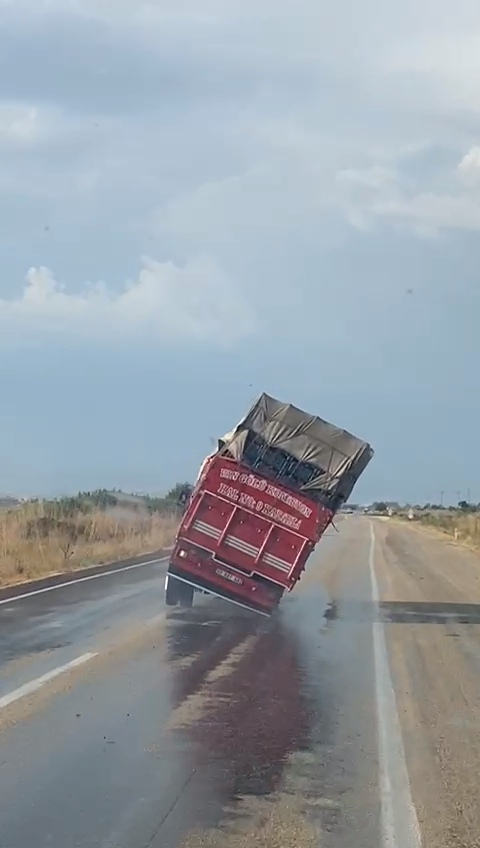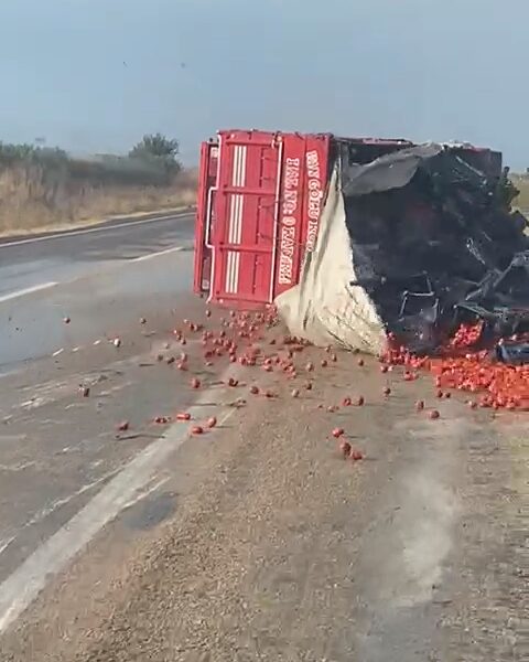 Kaza, akşam saatlerinde Ceyhan- Kadirli karayolu Haydarağa Köprüsü yakınlarında meydana geldi. Domates yüklü kamyon, sürücüsünün direksiyon kontrolünü yitirmesi sonucu devrildi. O anlar ise arkada seyir halindeki başka bir araçtaki kişi tarafından cep telefonu kamerasıyla kayda alındı. Kazada kamyon sürücüsü hafif şekilde yaralanırken, kasadaki domatesler ise yola saçıldı.