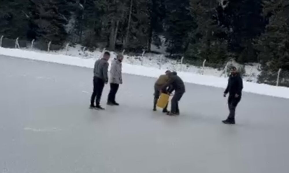 Ulus ilçesine 35 kilometre mesafedeki 1450 rakımlı Gezen Yaylası’ndaki Gezen Göleti buz tuttu. Hafta sonu aileleriyle birlikte bölgeye gezmeye giden bazı doğaseverler gölün üzerinde yürüdü. Gruptan bir kişi, gölün üzerinde motorlu testere ile buzu kesti. Buz kalınlığının yaklaşık 15 santimetre olduğu görülürken, o anlar cep telefonuyla görüntülendi.