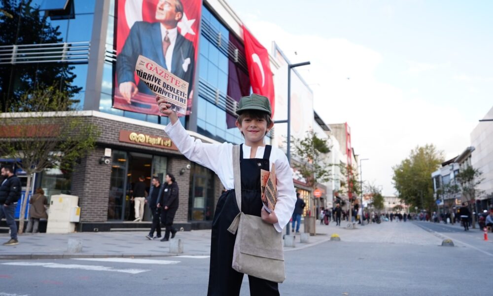 Düzce’de bir grup genç, Cumhuriyet’in ilanının 101’inci yıl dönümü nedeniyle etkinlik düzenledi. Bu kapsamda, küçük bir çocuk, Cumhuriyet’in ilan edildiği dönemindeki gazete dağıtıcısı çocuklar gibi giydirilerek, ‘Yazıyor, yazıyor. Cumhuriyet’in ilanını yazıyor’ sözleriyle, vatandaşlara üzerinde ‘Türkiye Devleti Cumhuriyettir’ yazılı gazete dağıttı. Vatandaşlar, çocuğu ve gazeteyi görünce duygulandıklarını ifade ederken, sosyal medyada paylaşılan görüntüler ise beğeni topladı.