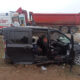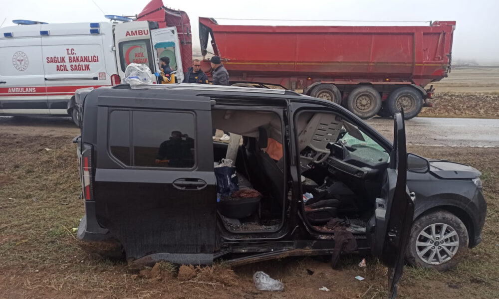 Dorsesi yan yatan TIR’a çarpan hafif ticari araçtaki çift yaralandı
