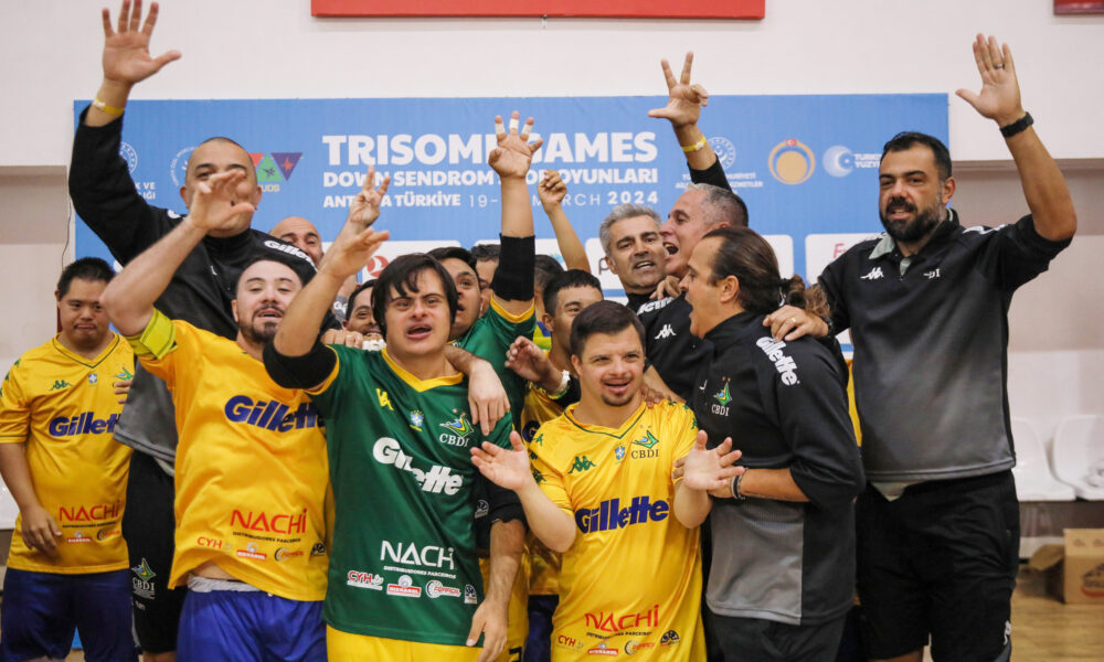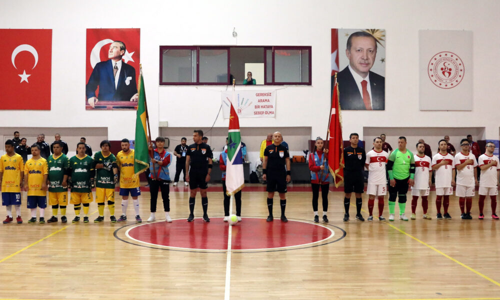 Antalyada düzenlenen Down Sendromlular Dünya Spor Oyunlarında (Trisome Oyunları), Down Sendromlu Futsal Milli Takımı, finalde karşılaştığı Brezilyaya 7-4 mağlup olarak dünya 2ncisi oldu.20-26 Mart tarihleri arasında ikincisi düzenlenen ve Antalyanın ev sahipliği yaptığı Down Sendromlular Dünya Spor Oyunlarında futsal kategorisinde finale kalan Down Sendromlu Futsal Milli Takımı, finalde Brezilya ile karşı karşıya geldi. Döşemealtı Spor Salonunda oynanan karşılaşmanın ilk yarısını Türkiye, 4-3 önde tamamladı. İkinci yarıda üstünlüğü eline geçiren Brezilya, karşılaşmadan 7-4 galip ayrıldı. Karşılaşmanın son düdüğüyle birlikte Brezilyalı sporcular, tribündeki taraftarlar ve teknik ekiple şampiyonluğu kutladı. Ay yıldızlı formayı giyen oyuncular ise karşılaşmayı kaybetmenin üzüntüsünü yaşadı. Özel Sporcular Federasyonu Başkanı Birol Aydın, karşılaşmanın ardından sporcuları teselli etti. Federasyon Başkanı Birol Aydın yaptığı açıklamada, “Hedefimiz dünya birincisi olmaktı, futbolun doğduğu yere, Brezilyaya yenildik. Özel çocuklarımızın nasıl mücadele verdiğini gördük. Ülkemizdeki özel çocukların nereden nereye geldiğini gördük. Biz son 20 yılda bu noktaya geldik. Bu sürede dünya 2ncisi olduk. Buna bile üzülüyoruz. Buranın kazananı down sendromlu çocuklar oldu. Daha önce 3üncü olduk. Bugün 2nci olduk, önümüzdeki şampiyonada 1inci olmak istiyoruz” dedi.Karşılaşmanın ardından düzenlenen törende dünya 1incisi olan Brezilya, 2nci Türkiye ve 3üncü Meksikanın sporcularına madalya ve kupaları verildi. GÖRÜNTÜ DÖKÜMÜ:- Maçtan detaylar- Seyircilerden detaylar- Federasyon başkanıyla röportaj- Madalya töreninden detaylar