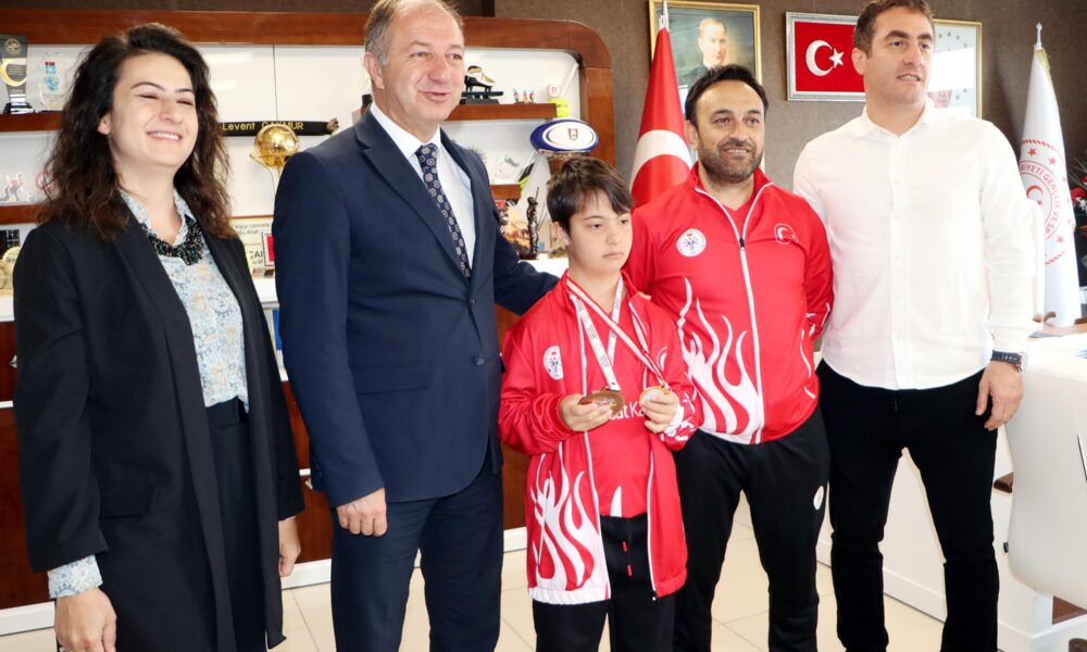 Muhammet Tarık Karakurt’u, annesi, babası ve antrenörü İsmail Gülerle birlikte misafir eden Gençlik ve Spor İl Müdürü Levent Çakmur, sporcuyu tebrik etti. Gençlik ve Spor Kulübü sporcusu olan Muhammet Tarıkın başarısının kendilerini umutlandırdığını belirten Çakmur, “Tarık, Avrupa Şampiyonasında 3’üncülük elde ederek, bizi gururlandırdı. Gelecek vadeden sporcular arasında olması, olimpiyat şampiyonluğu hedefi olması gerçekten gurur verici bir durum. Artık hedeflerimiz çok yüksek. Hocamızla birlikte bir dünya şampiyonluğunu yakında göreceğimizin sinyalini verdi. Bu madalya bizi daha da hırslandırdı, daha da motivasyonumuzu artırdı. Tarıkla birlikte daha iyi işlere imza atacağımıza inanıyorum” diye konuştu.