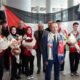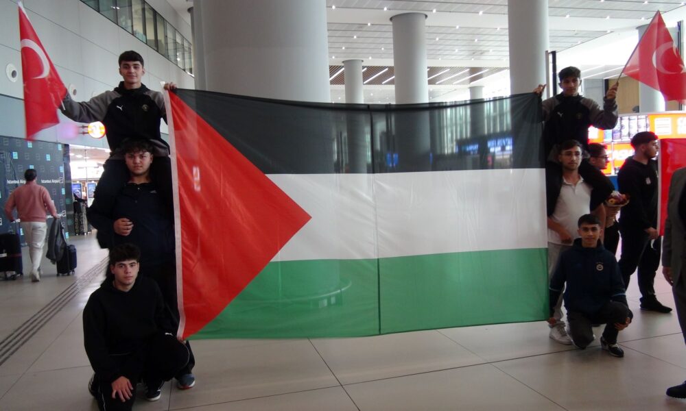 -Sporcuların Türk ve Filistin bayraklarıyla karşılanması