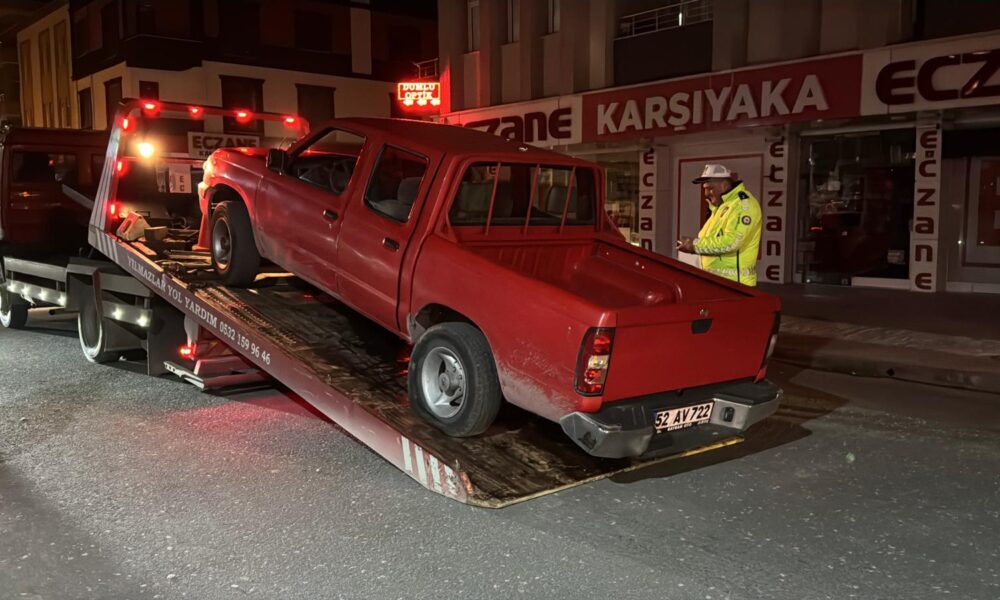 Olay, saat 23.00 sıralarında Gülyalı ilçesinde meydana geldi. Polis, kontrol noktasında rutin denetimlerde 52 AV 722 plakalı kamyonetin sürücüsüne ‘Dur’ ihtarında bulundu. Ancak sürücü kaçtı, polis ekipleri de peşine düştü. Takip sırasında kamyonet, Altınordu ilçesinde bazı sivil ve polis araçlarına çarptı. Polis, Karşıyaka Mahallesi’nde kamyoneti arka lastiklerine ateş ederek durdurdu. Alkollü olduğu öne sürülen sürücü, gözaltına alındı. Kamyonet ise çekici ile bölgeden kaldırıldı.