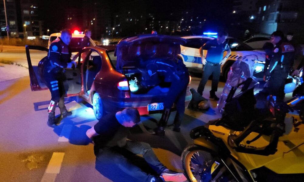Edirne Emniyet Müdürlüğü ekipleri, gece saatlerinde çeşitli noktalarda yaptığı asayiş uygulamasında; Atatürk Mahallesi’ndeki noktada polis 22 DZ 654 plakalı otomobilin İ.O.’ya ‘dur’ ihtarında bulundu. İ.O., ihtara uymayarak aracı ile birlikte kaçtı. Polis, kaçan otomobili takibe aldı. Ana caddeden yon yollara giden ve bir lastiği patlayan otomobilin sürücüsü kaçmayı sürdürdü. Atatürk Mahallesi’nde durdurulan otomobildeki 4 kişi, gözaltına alınarak yakalandı. Ters kelepçe takılanlardan biri polise, “Ben kaçmadım, neden kaçayım. Şoför kaçtı” dedi.