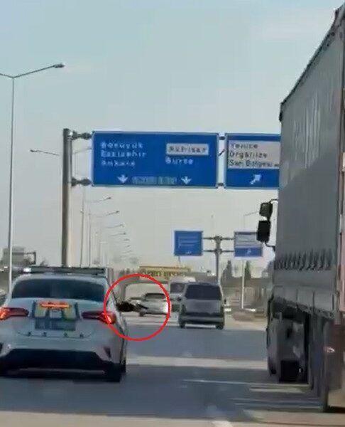 Olay saat 16.30 sıralarında Bursa-Ankara karayolu İnegöl girişinde meydana geldi. Bursadan İnegöle seyir halinde olan 16 AFZ 503 plakalı TIRın sürücüsünün ani manevralar yaparak trafiği tehlikeye düşürdüğü ihbarı üzerine, İnegöl Bölge Trafik ekipleri önlem aldı. Ekipler, ilçe girişinde sürücüye ‘dur’ ihtarında bulundu. Hızla kaçmaya başlayan sürücü, manevra yaparak trafikte ilerlerken, TIR’la, ekip otosu yan yana geldiği sırada, polis memurunun camdan silah çıkarıp, TIRın lastiklerine doğrulttuğu anlar, bir başka sürücü tarafından cep telefonu kamerasıyla görüntülendi.