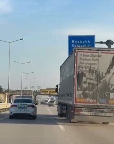 Bir süre takip edilen Samet M. isimli sürücü, TIR’ı sağ şeride çekip dururken, ehliyetsiz olduğu için kaçtığı öğrenildi. Samet M.ye ehliyetsiz araç kullanmaktan 18 bin 678 TL ve aksine bir işaret bulunmadıkça, gidişe ayrılan en soldaki şeridi sürekli olarak işgal etmekten 9 bin 267 TL ceza kesildi.