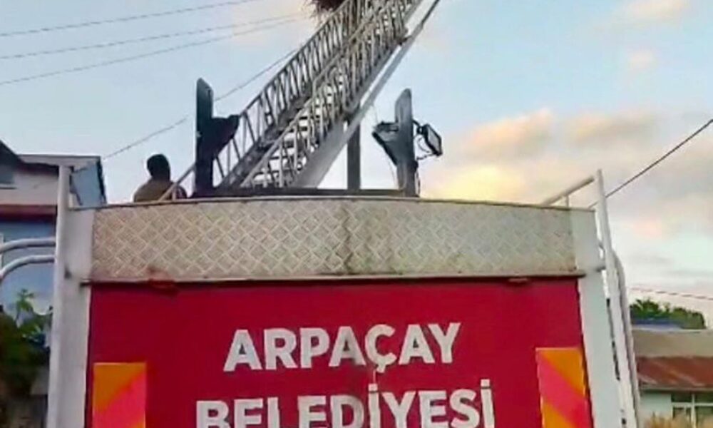 Arpaçay ilçesine bağlı Tepeköyde elektrik direğindeki yuvasından düşen yavru leyleği görenler, Arpaçay Belediyesi İtfaiye Müdürlüğünden yardım istedi. İlçeye yaklaşık 5 kilometre uzaklıktaki köye ulaşan itfaiye ekibi, yavru leyleği kucağına alarak itfaiye merdiveni ile direğin üzerine çıktı. Yavru leylek, itfaiyecinin özeni ile yuvasına konuldu.