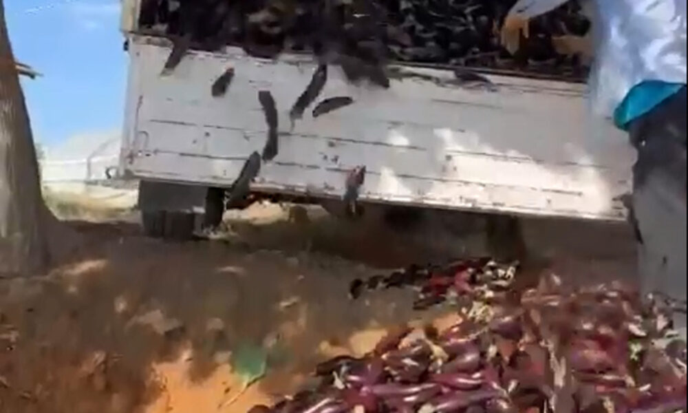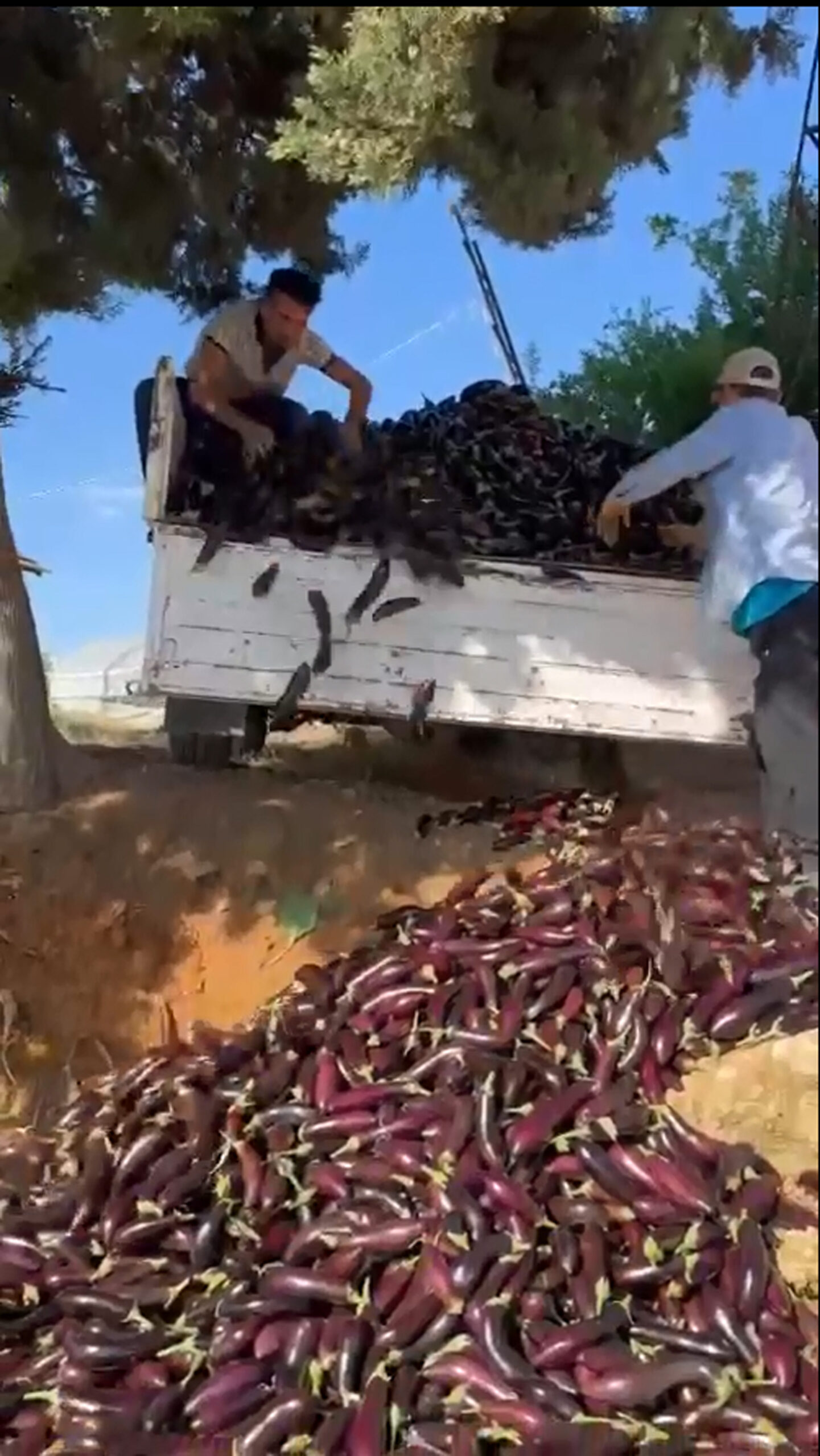 Antalyada bir çiftçi, para etmediği gerekçesiyle bir kamyonet dolusu patlıcanı çöpe döktü. O anlar, çiftçinin arkadaşı tarafından cep telefonu kamerasıyla kayda alındı. Komisyoncuların halde patlıcana 2-3 TL fiyat teklif ettiğini öne süren çiftçinin, “Para mı ediyor. Mal kırmızıymış” dedi. Sosyal medyada da paylaşılan görüntülerde çiftçi patlıcanları çöpe dökerken, bir yandan da şunları söyledi: