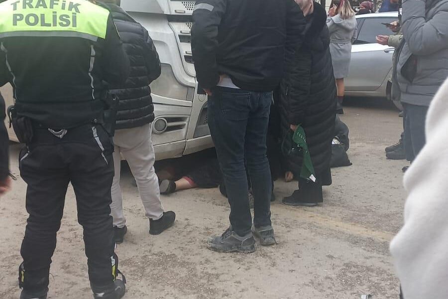 Düşürdüğü cüzdanını almaya çalışırken kamyonun altında kalarak öldü; kaza kamerada