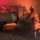 Duvara çarpan kamyonet yandı