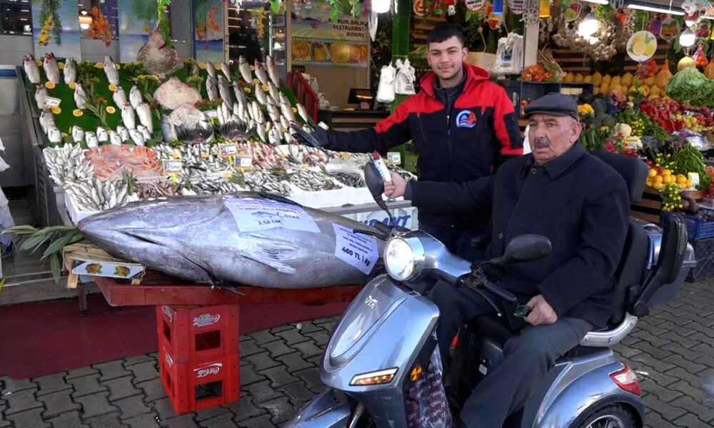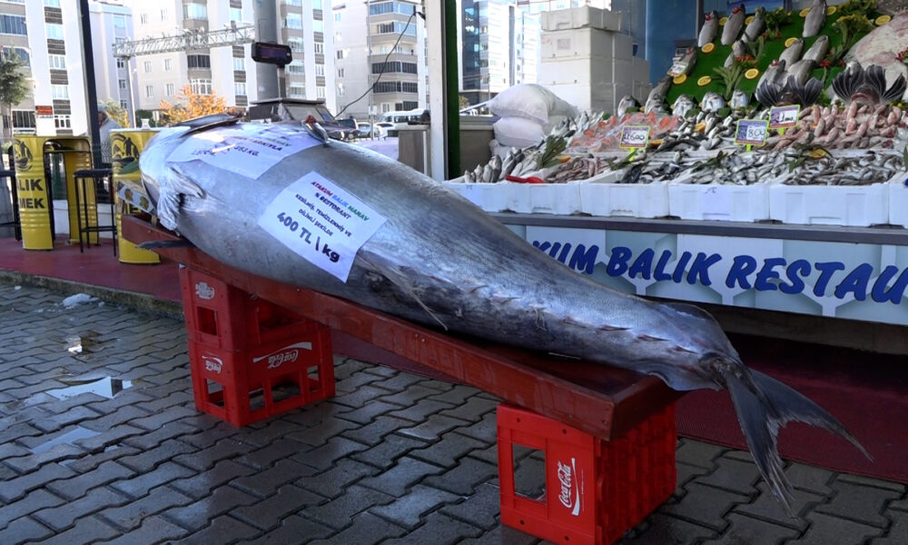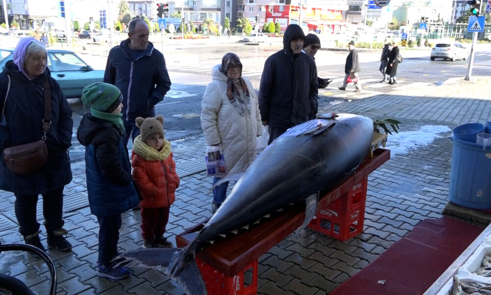 Balıkçı Emin Kaan Tunçer, “Karadeniz’in açık sularında 12 kişi ile zor şekilde tekneye çekilen balığımız, insanların çok dikkatini çekiyor. Yoldan geçen çocuklar bunun maket olduğunu zannediyor. Fotoğraflarını, videolarını çekiyorlar. İnsanlar ilk defa böyle büyük bir balık gördüklerini söylüyor. Balığımızı kilosunu 400 TL’den sunacağız” dedi.