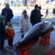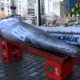 Balığın 31 Aralıkta yakalandığını belirten Tunçer, “Balığımızı ağır olduğu için biz de dün gece forklift aracıyla indirdik. Balığı hareket ettiremediğimiz için kesim işlemi de burada olacak” diye konuştu.