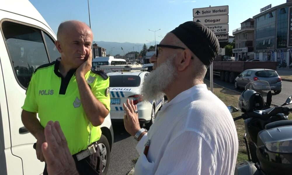 • Düzce'de, dronla denetim yapan trafik polisleri, 20 araç sürücüsüne trafikte saygısız araç kullanmak ve emniyet şeridi ihlalinden 134 bin 540 TL para cezası uyguladı. Cezai işlem uygulanan bir sürücü(Fotoğrafta) polis ekiplerinin yanına gelerek “Ben cezam