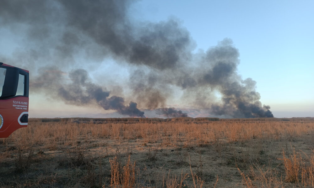 Eber Gölü’ndeki sazlık yangınına havadan müdahale