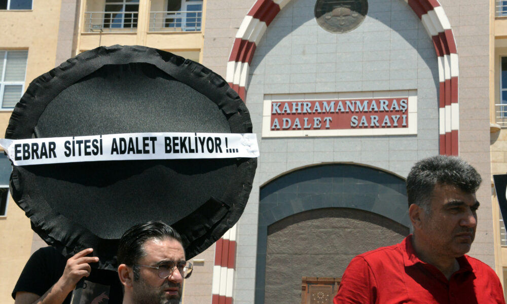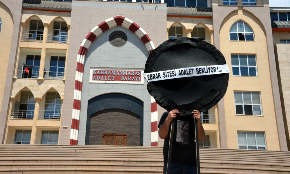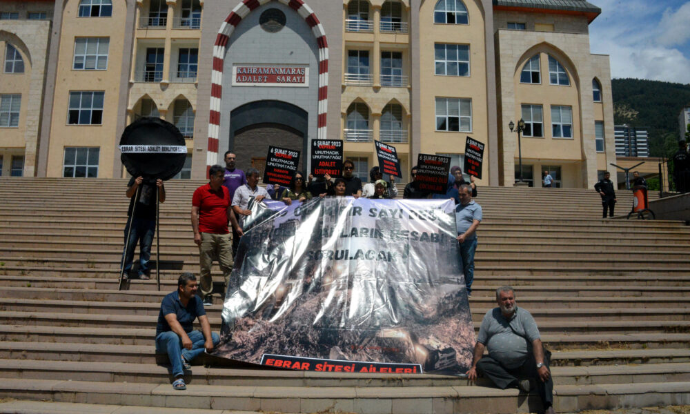 22 bloktan 18 bloku yıkılarak 1400 kişiye mezar olan 6 Şubat depremlerinin simgelerinden Ebrar Sitesi ile ilgili davalar devam ederken, ölenlerin yakınları adliye önünde toplandı. Ellerinde döviz ve pankartlarla seslerini duyurmaya çalışanlar, Kahramanmaraş Adliyesi’ne siyah çelenk bıraktı. Aileler adına açıklama yapan Tuğçe Demir, Ebrar Sitesi’nde babası ile kardeşini kaybettiğini ve sadece adaletin yerini bulmasını istediklerini belirtti.