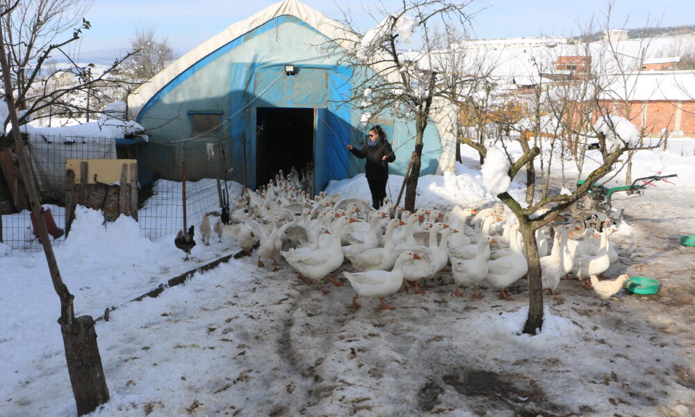 Şehirden köye geçiş sürecini anlatan Ebru Şahinkaya, “3 yıldır köyde yaşıyoruz. Öncesinde Samsun merkezde yaşıyorduk. Lisans mezunuyum, okul öncesi öğretmeniyim. ‘Üretimde hayat var’ zihniyetiyle hem tarım hem de hayvancılık yapmak için nereden başlayacağımızı da bilmeyerek köye göç ettik. Pandeminin de etkisi çok oldu. 3 yıldır da köydeyiz. Şu anda hem kaz yetiştiriyor hem çilek hem de çilek üretiyoruz” dedi.