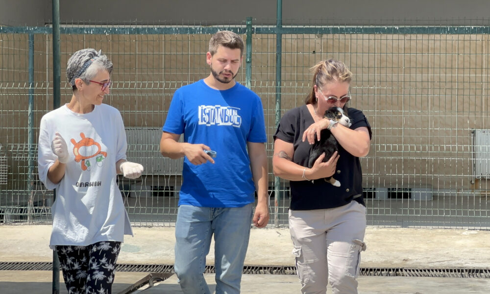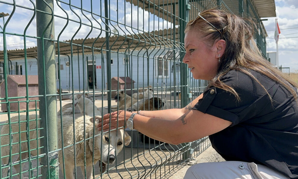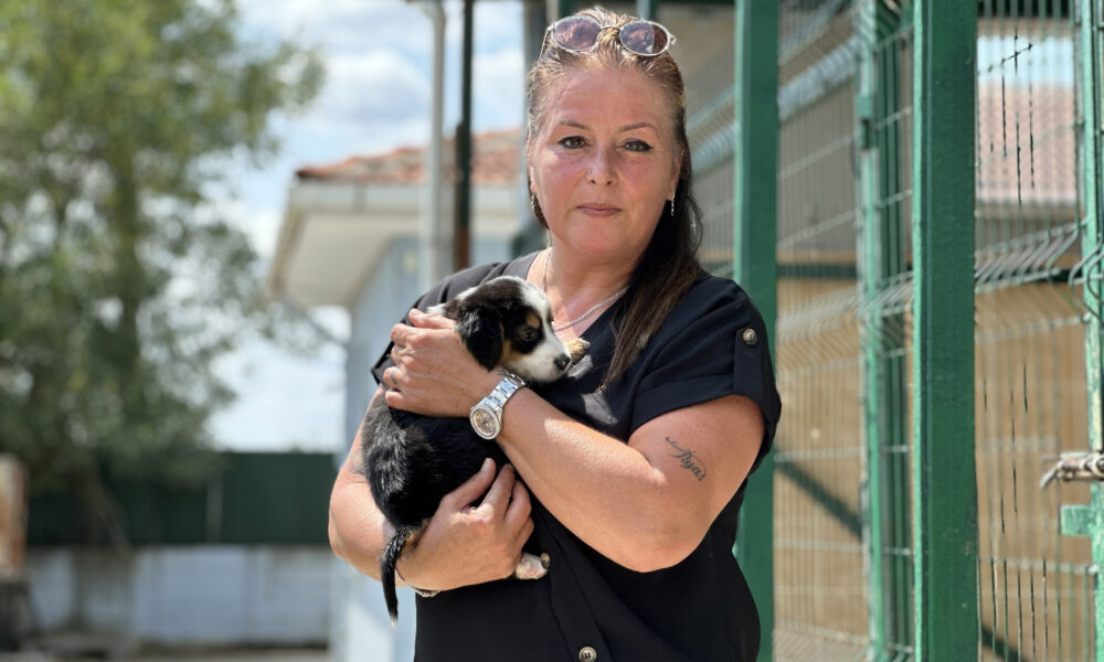 Almanya'da huzurevinde hemşire olarak çalışan Suna Kaya (Fotoğrafta), Temmuz ayında köpeğinin vefat etmesinin ardından, tatil için geldiği Edirne'de sokak hayvanları geçici bakımevinden iki kardeş yavru köpek sahiplendi. Fotoğraf: Umut IŞIK / Edirne, (DHA