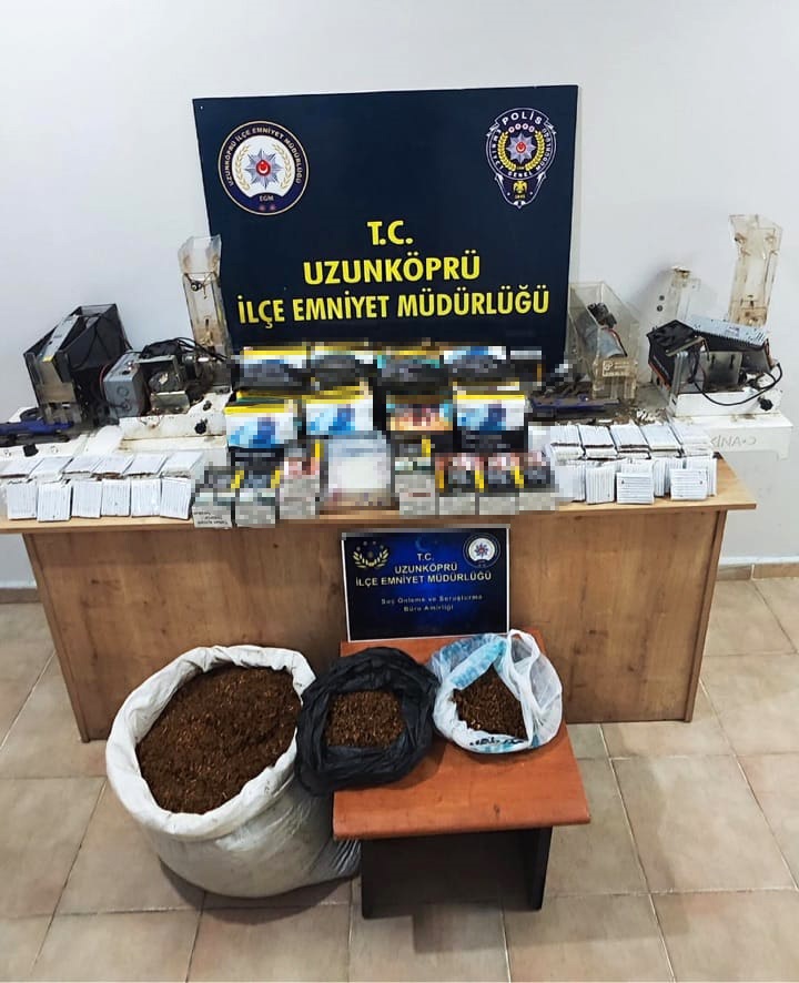 Uzunköprü İlçe Emniyet Müdürlüğü Suç Önleme ve Soruşturma Büro Amirliği ekipleri, tütün doldurulmuş makaron ve kaçak sigara satışının önlenmesine yönelik yaptığı çalışmada H.H.’nin evi ve aracında arama yaptı. Aramada, 2 bin 140’ı doldurulmuş 2 bin 800’ü boş toplam 4 bin 940 makaron, 14 kilo 980 gram kaçak tütün, 500 şeffaf poşet ve 2 sigara doldurma makinesi ele geçirildi. H.H. ve G.H. hakkında ‘5607 sayılı kanuna muhalefet’ suçundan adli işlem başlatıldı.