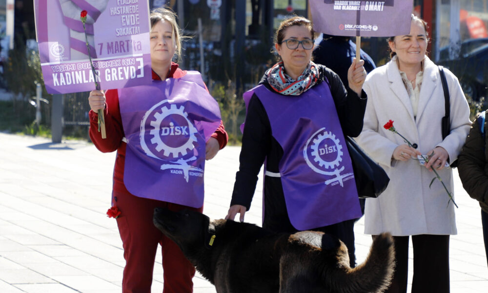 Yaşamı durdurmak için kadınlar grevde sloganıyla DİSK öncülüğünde düzenlenen etkinlikte, sendikaya bağlı çalışan kadınlar, 8 Mart Dünya Kadınlar Günü nedeniyle 1 günlük iş bırakarak, yürüyüş yaptı. Keşan Belediyesi Çok Amaçlı Pazaryeri Kompleksi’nde toplanan kadınlar, ellerinde taşıdıkları dövizlerle sloganlar atıp Cumhuriyet Meydanı’na yürüdü. Konuya ilişkin basın açıklamasını okuyan Keşan Belediyesi personeli Berna Adalılar, “Biz kadınlar, 8 Mart’a giderken hayat pahalılığına, düşük ücretlere, güvencesiz istihdam politikalarına ve ayrımcılığa karşı itiraz sesimizi yeniden yükseltiyoruz. Hem çalışma hayatında hem de görünmeyen ev içi emeğimizdeki eşitsizliklere, güvencesizliğe, baskılara, şiddet ve tacize karşı birlikte duruyoruz. Kadınların üzerindeki bakım yükünü alacak kamusal sosyal politikaların hayata geçirilmesini istiyoruz. Anne desteği değil ebeveyn desteği talep ediyoruz. Gebelik izni değil, ebeveynlik izni istiyoruz. Doğum teşviki değil nitelikli, kamusal, ücretsiz kreş istiyoruz. Bizim için düzenli ve güvenceli istihdam istiyoruz. Biz kadınlar, haklarımızı savunuyor, eşitlik, özgürlük ve adalet için sesimizi yükseltiyoruz. Kazanılmış haklarımıza saldıranlara karşı eşitlik, özgürlük ve adalet taleplerimizle yaşamı durduruyoruz” dedi.