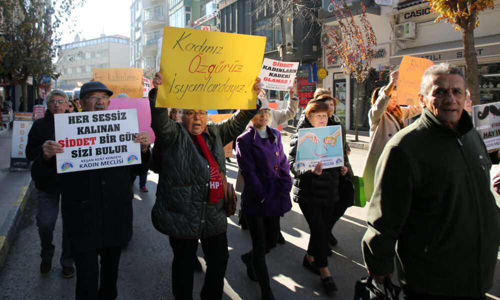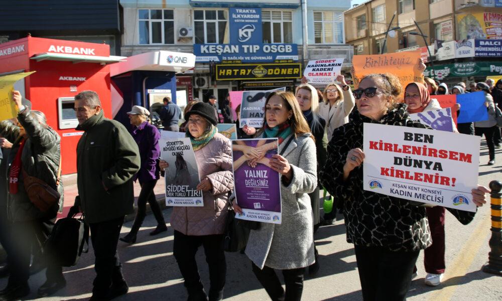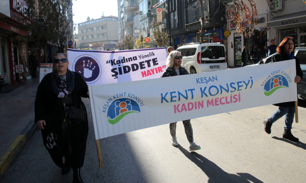 Keşan Kent Konseyi Kadın Meclisi organizasyonunda, Keşan Belediyesi, bazı siyasi parti ve sivil toplum kuruluşlarının da destek verdiği yürüyüş, Hastane Caddesindeki Keşan Kent Müzesi önünden başladı. Kadınlar, ellerinde taşıdıkları pankart ve dövizlerle sloganlar atarak Cumhuriyet Meydanı’na yürüdü. Kadınlar, geçtikleri cadde ve sokaklarda çevredekiler tarafından alkışlarla desteklendi. Cumhuriyet Meydanı’nda bulunan Atatürk Anıtı önünde Kent Konseyi Kadın Meclisi Başkanı Saliha Kafalı, grup adına basın açıklamasını okudu.