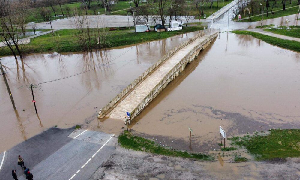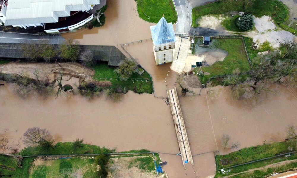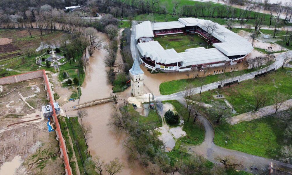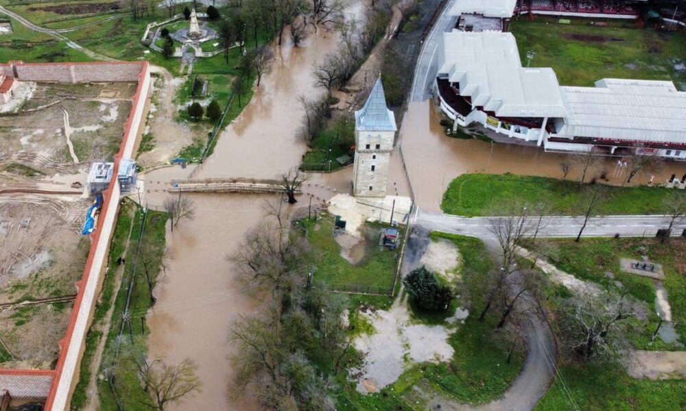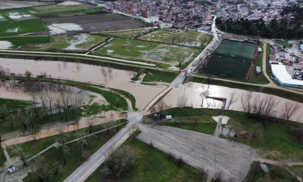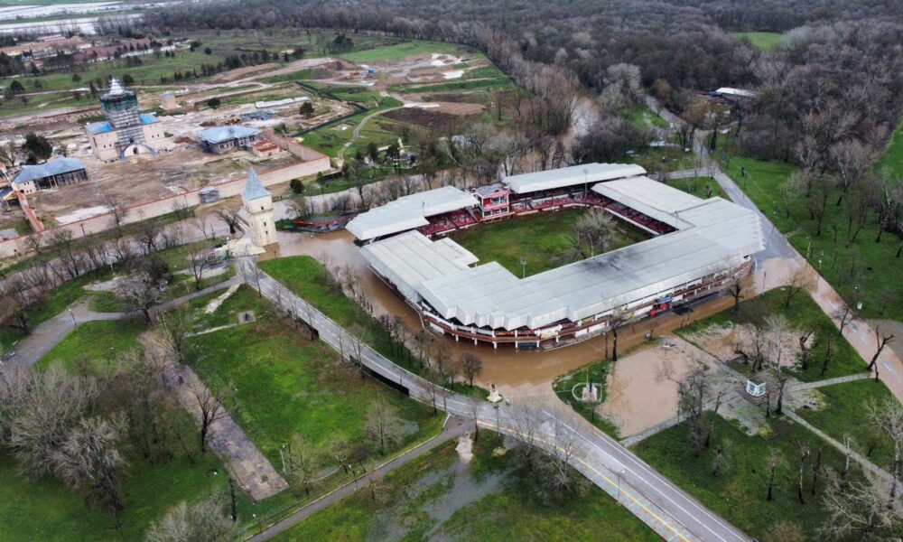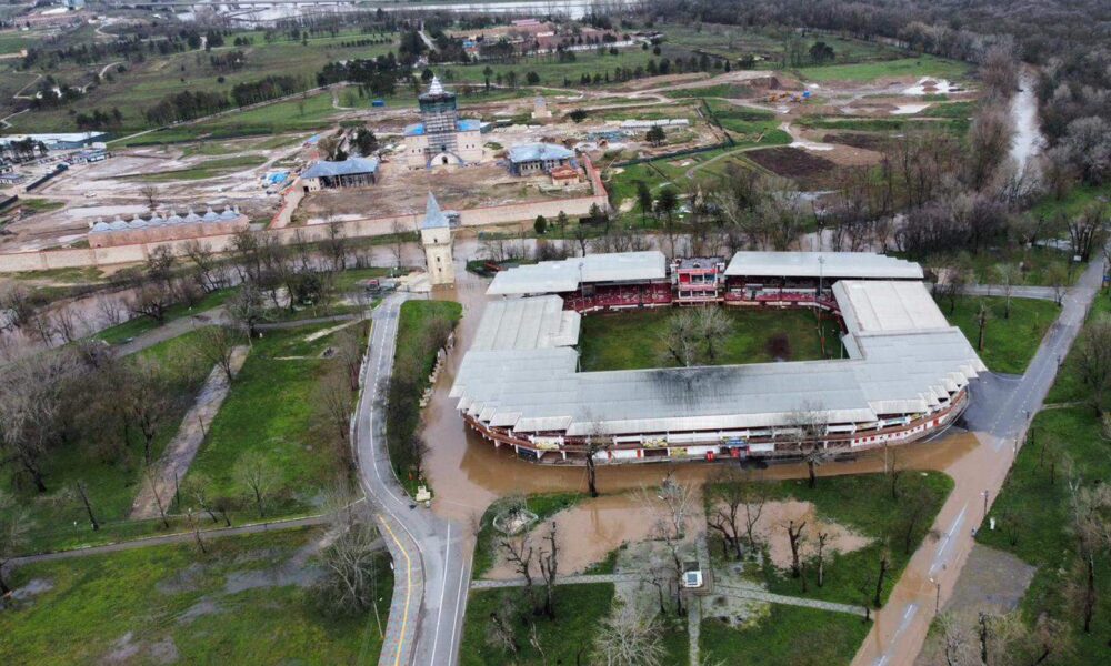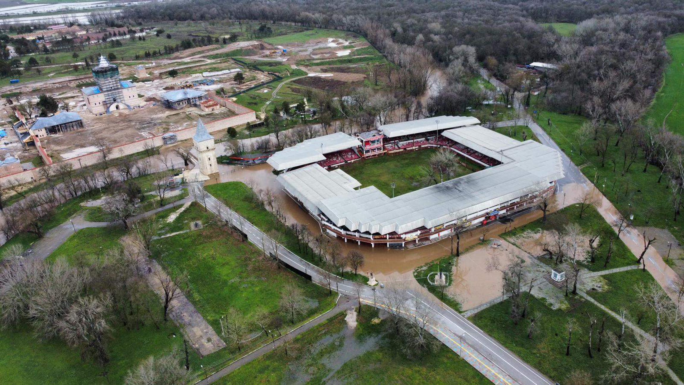 Edirne'de Meriç ve Tunca nehirlerinin debisi arttı. Tunca'nın taşması sonucu Kırkpınar Güreşleri'nin yapıldığı Sarayiçi, su ile kaplandı. Fotoğraf: Umut IŞIK/Edirne, (DHA)