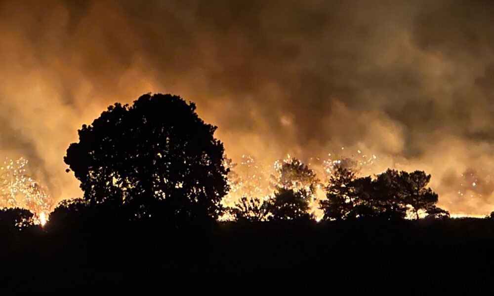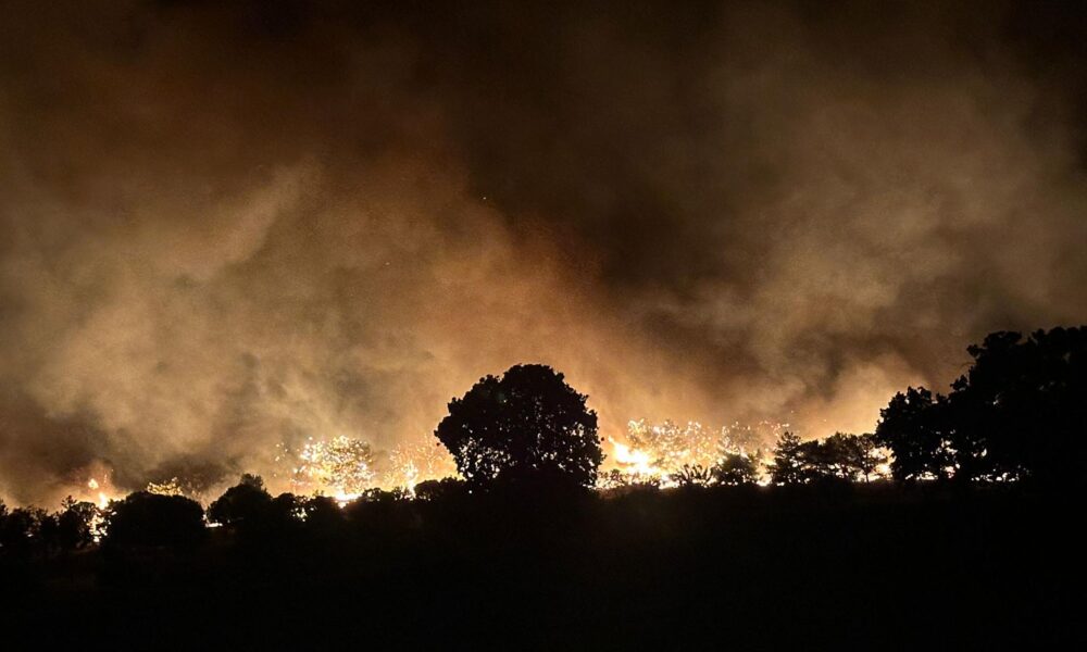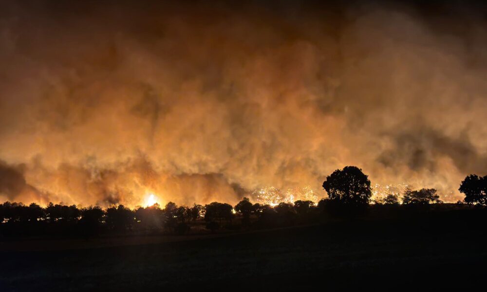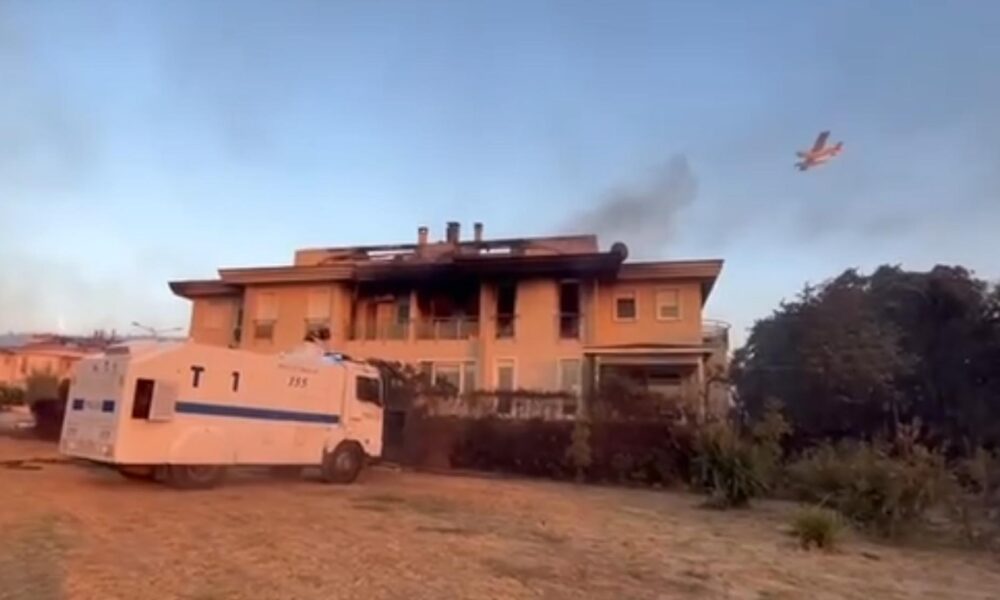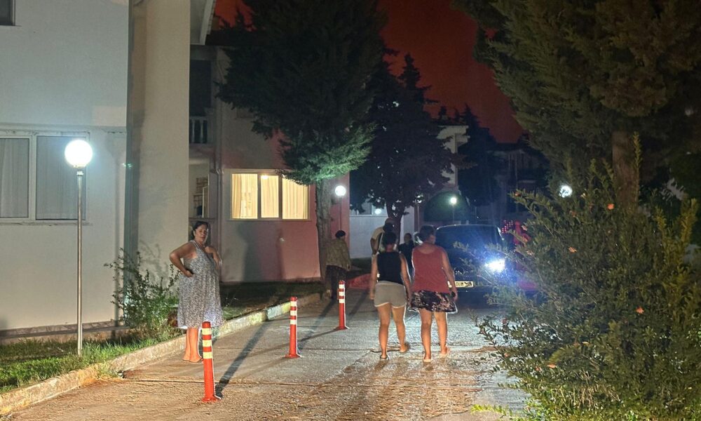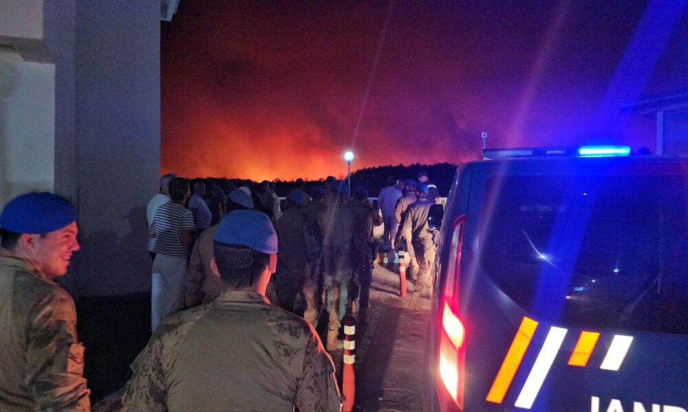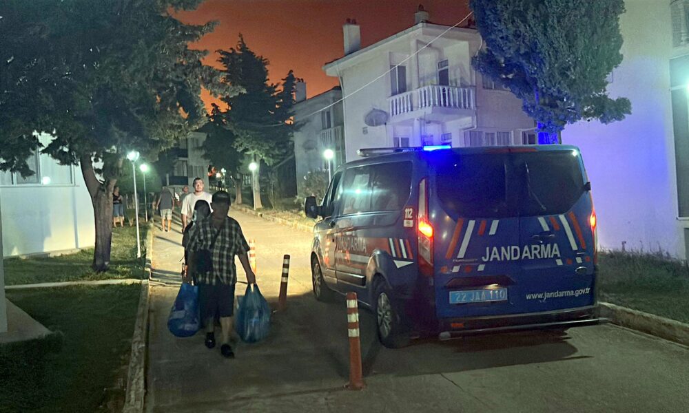 Edirne'nin Enez ilçesine bağlı Büyükevren köyü sahilinde çıkan orman yangını rüzgarın da etkisiyle Gülçavuş köyüne ulaştı. Yangını söndürme çalışmaları sürerken bir tatil sitesi tedbir amaçlı boşaltıldı. Fotoğraf: Umut IŞIK/Edirne, (DHA)