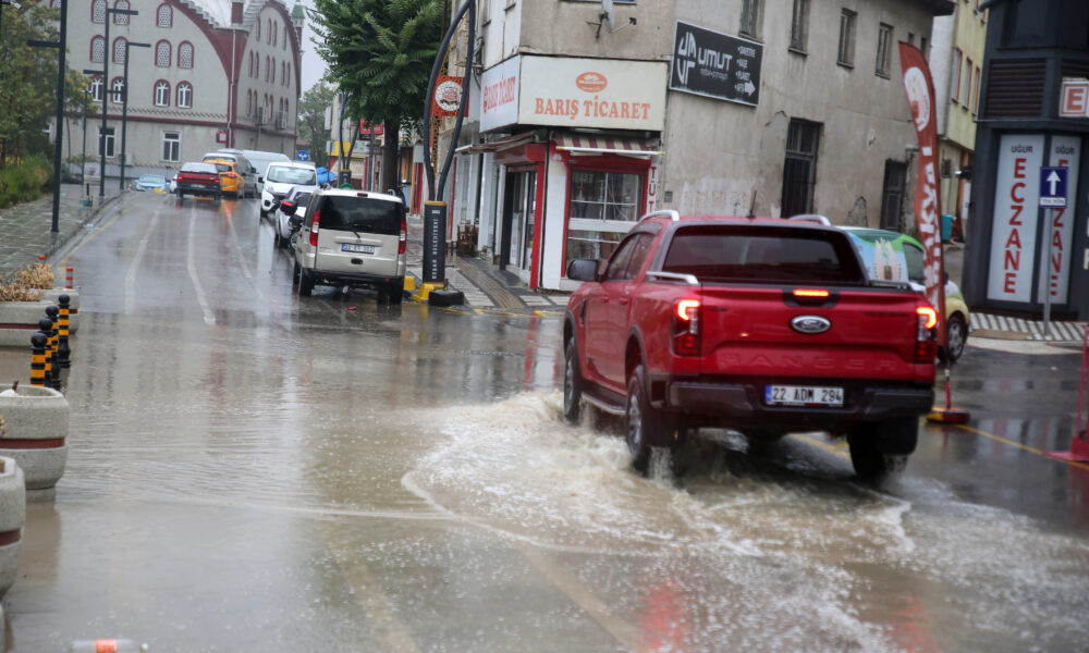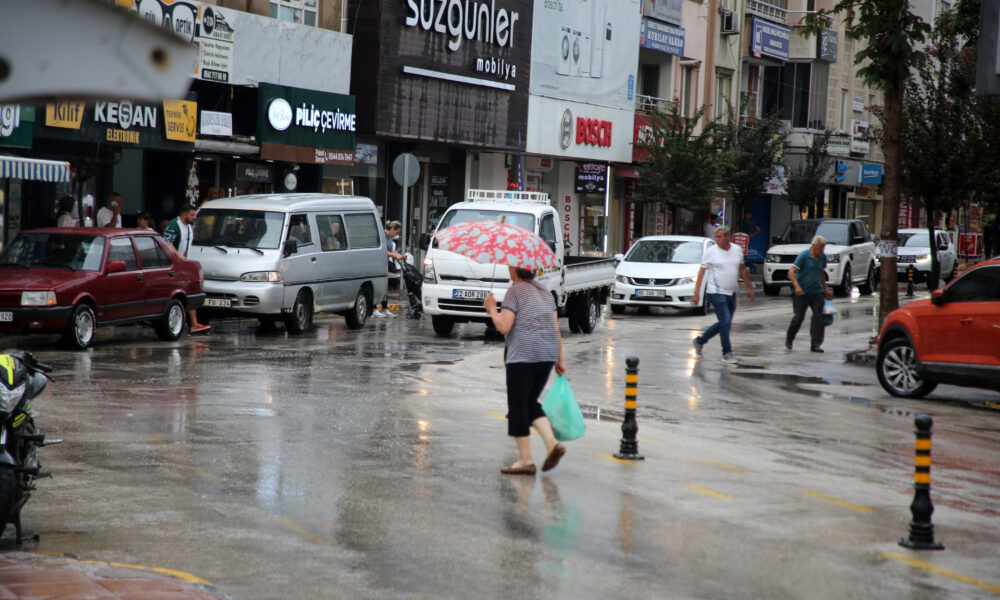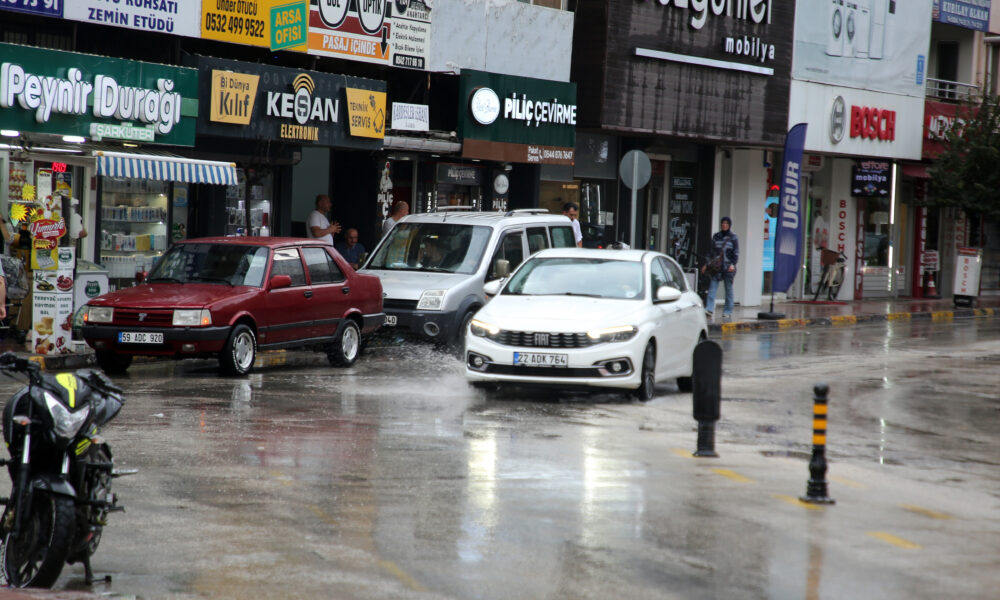 Meteoroloji Genel Müdürlüğü’nün uyarısının ardından Keşan ilçesinde sağanak yağış günlük yaşamı olumsuz etkiledi. Hava sıcaklığının 27 derece ölçüldüğü ilçede akşam saatlerinde yağmur başladı. Sağanak nedeniyle cadde ve sokaklarda su birikintileri oluştu, sürücüler trafikte zor anlar yaşadı. Ana yollarda trafik zaman zaman durma noktasına geldi. Yağmura hazırlıksız yakalananlar, saçak altları ile pasaj girişlerine sığındı. Yağış, kazaları da beraberinde getirdi. Yukarı Zaferiye Mahallesi Yaprak Sokak’ta seyreden A.P. (30) yönetimindeki 22 ACN 774 plakalı motosiklet, yağış nedeniyle kayganlaşan yolda kontrolden çıkarak, devrildi. Motosikletten düşen sürücü A.P., yaralandı. İhbar üzerine olay yerine polis ve sağlık ekipleri sevk edildi. Yaralı sürücü A.P., ambulansla kaldırıldığı Keşan Devlet Hastanesi’nde tedavi altına alındı. Yağış nedeniyle maddi hasarlı kazalarda meydana geldi.