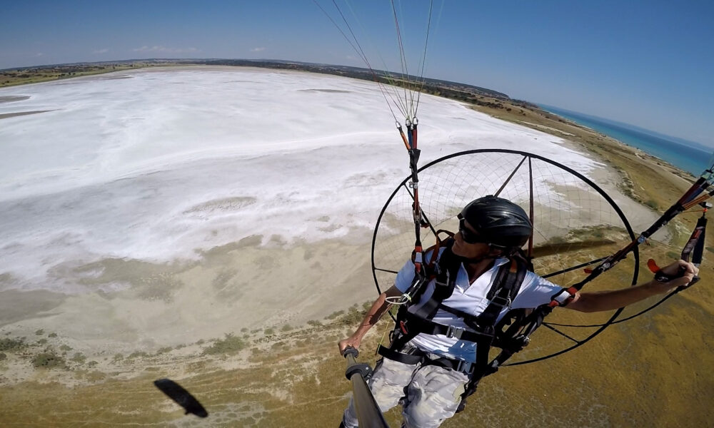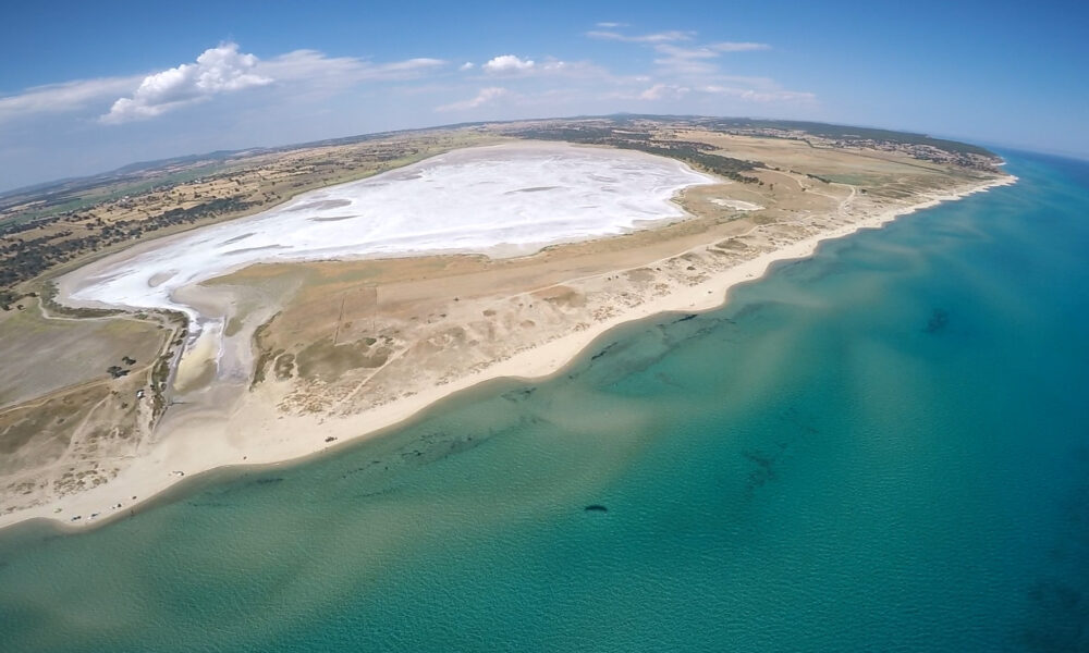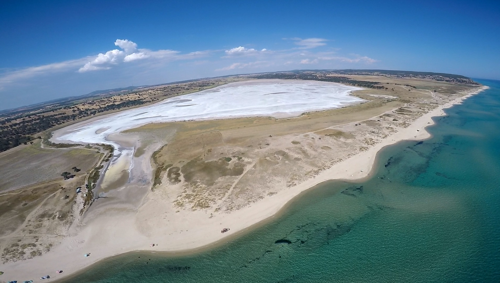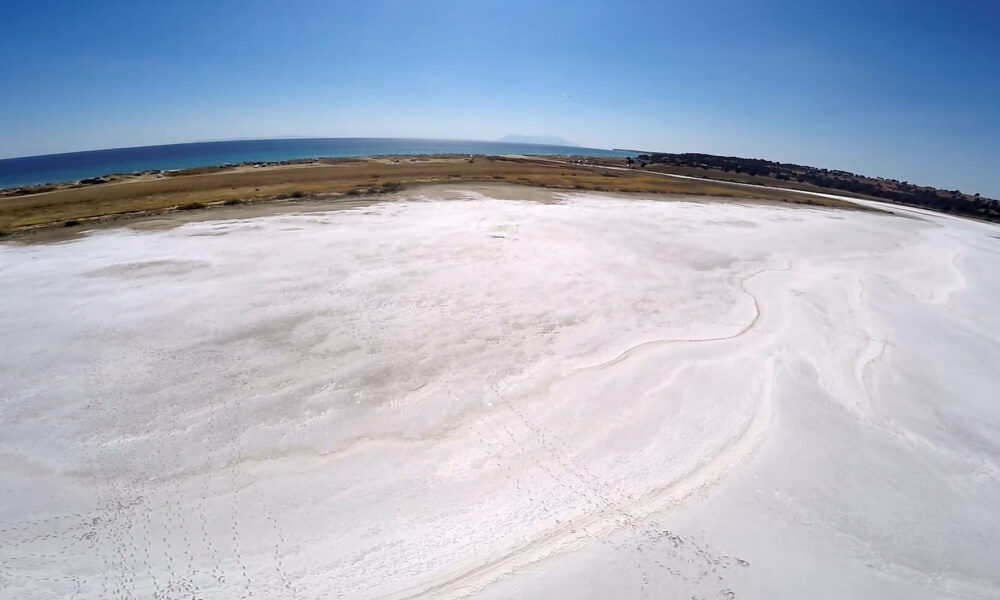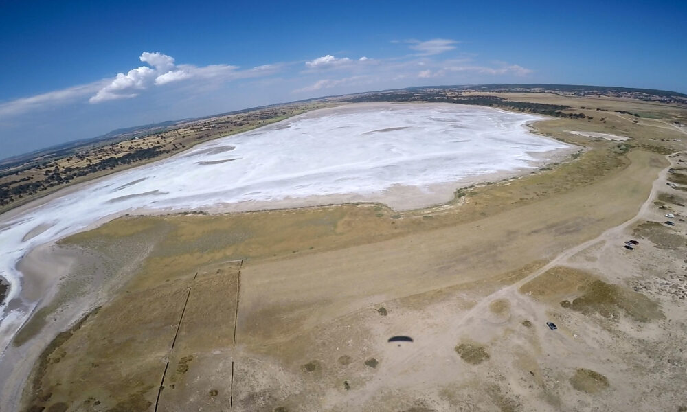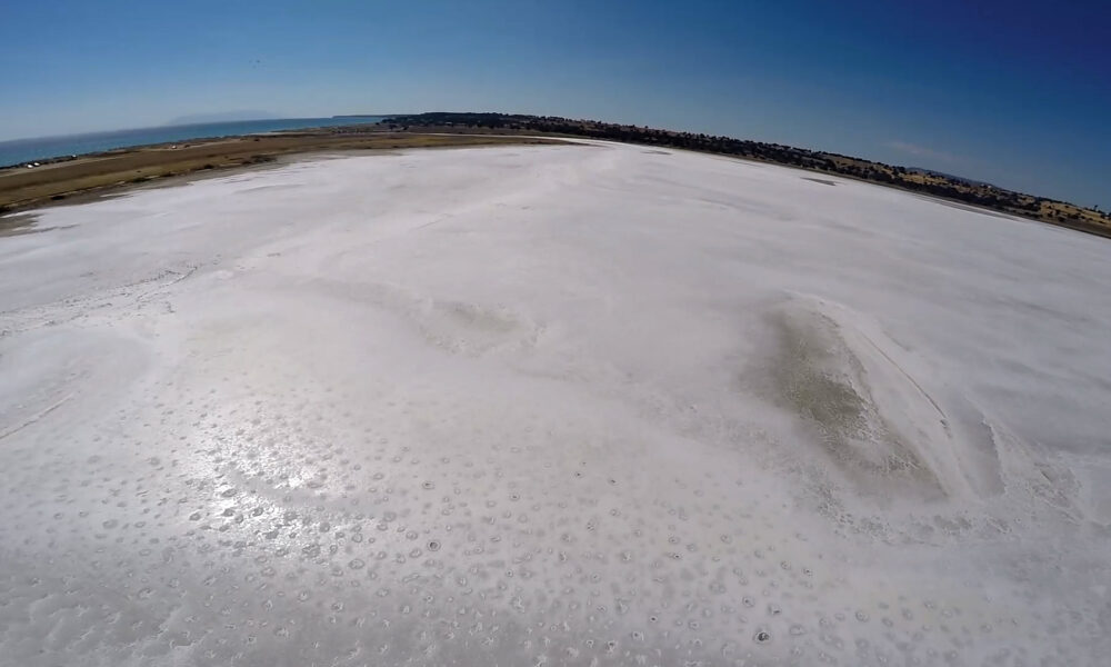 Edirne’de suyu buharlaşıp tuz tabakası ortaya çıkan göl havadan görüntülendi