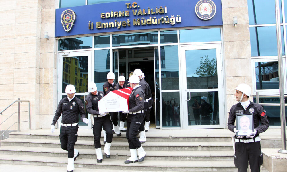 Edirne’de yaşamını yitiren polis memeru, törenle son yolculuğuna uğurlandı