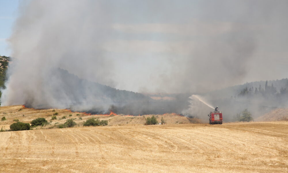 Edirne’de yerleşim yerlerine yakın tarlada yangın; 50 dönüm alan zarar gördü
