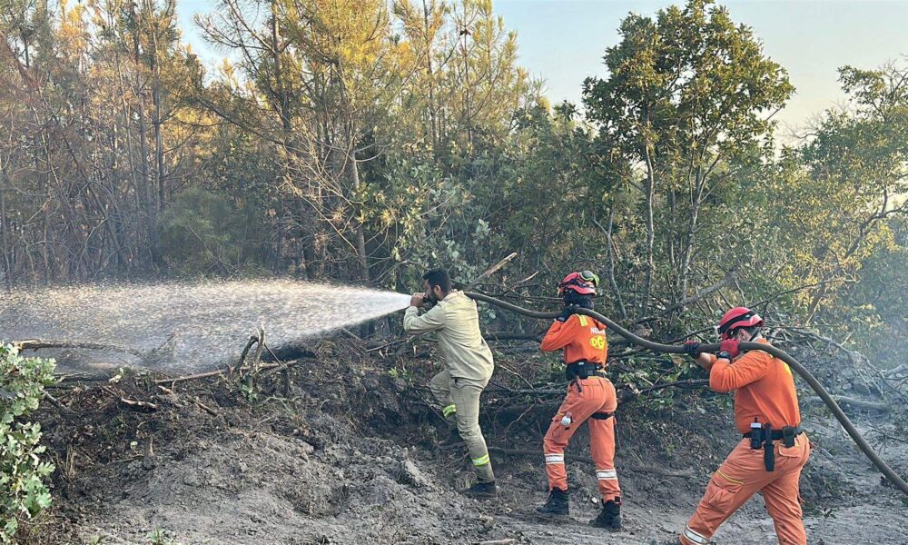 Edirne'nin Enez ilçesinde ormanlık alanda çıkan ve geniş bir alana yayılan yangın, havadan ve karadan ekiplerin müdahalesiyle yaklaşık 16 saatte kontrol altına alındı. Yangında 7 yazlık konut zarar gördü. Fotoğraf: Umut IŞIK/Edirne, (DHA)