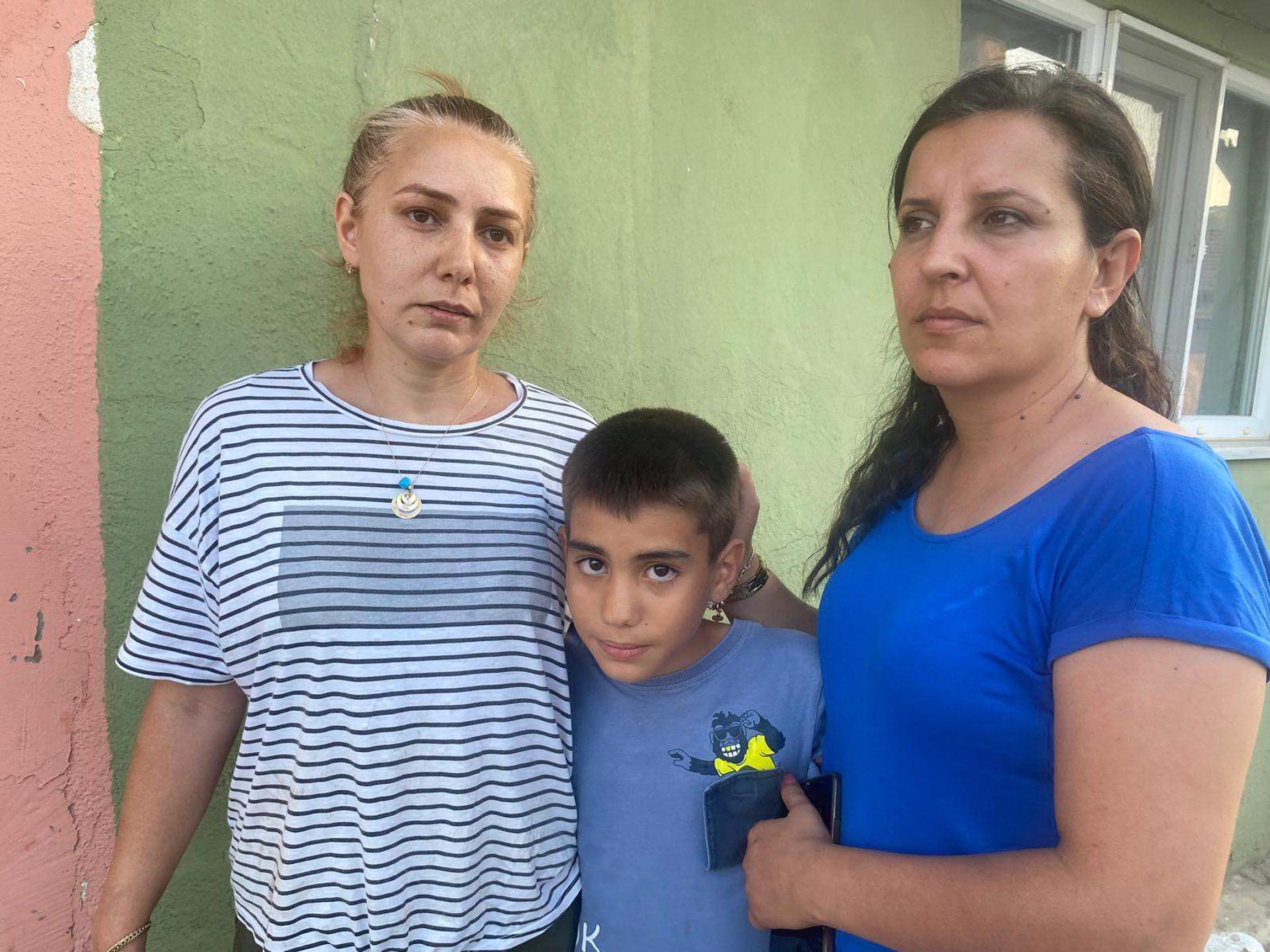 • Edirne'de işletmenin açık garajında bakılan köpeğin saldırdığı Efe Kamil Sakıncıman'a (ortada), muhtar Neslihan Dönmez Dürüktaş (mavili) ile annesi Beste Sakıncıman (solda). Fotoğraf: Umut IŞIK/Edirne, (DHA)